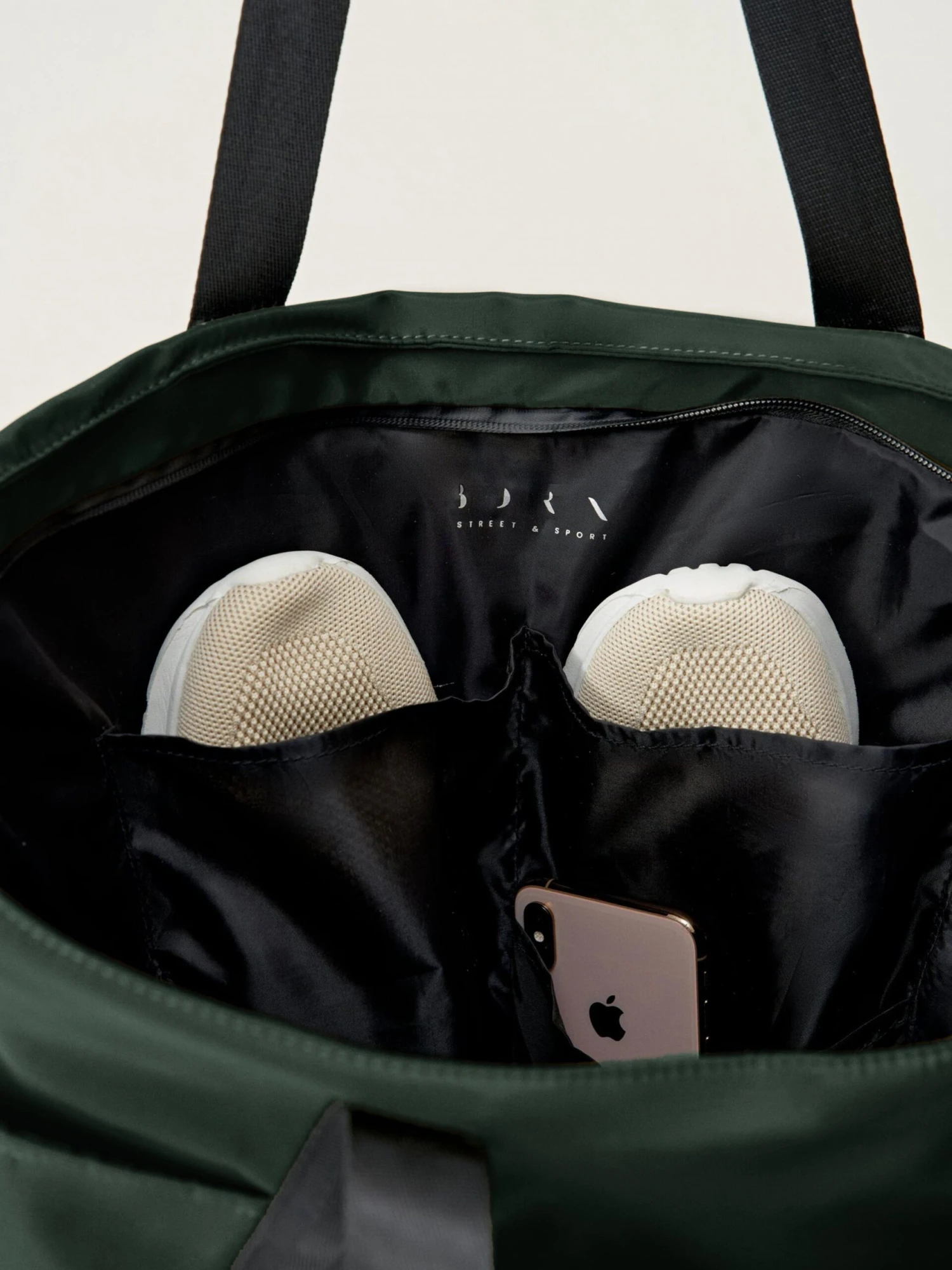 Bolsa de gran capacidad, con 6 bolsillos exteriores, uno con ajuste el谩stico para portal el bloque de yoga o cualquier otro elemento, 4 de acceso r谩pido y otro con cremallera. 3 bolsillos interiores.