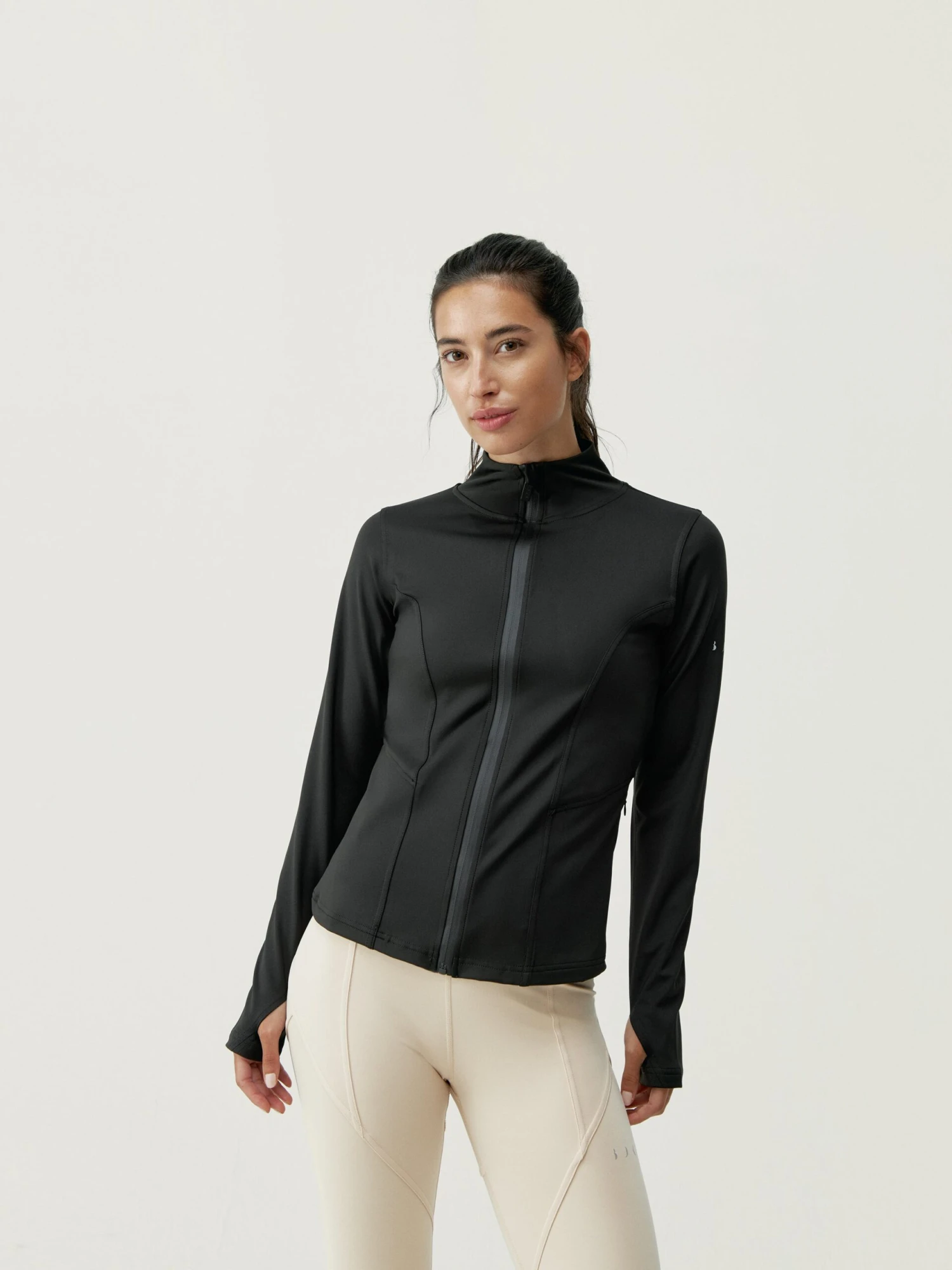 Chaqueta con dos bolsillos laterales con cierre de cremallera invisible. Tejido ligero y el谩stico, de tacto suave con una adaptaci贸n al cuerpo perfecta, sensaci贸n de segunda piel. Manga larga, pu帽os con abertura para el dedo para un ajuste perfecto y mayor confort. Su patr贸n y costuras dobles est谩n dise帽ados para realzar la figura.