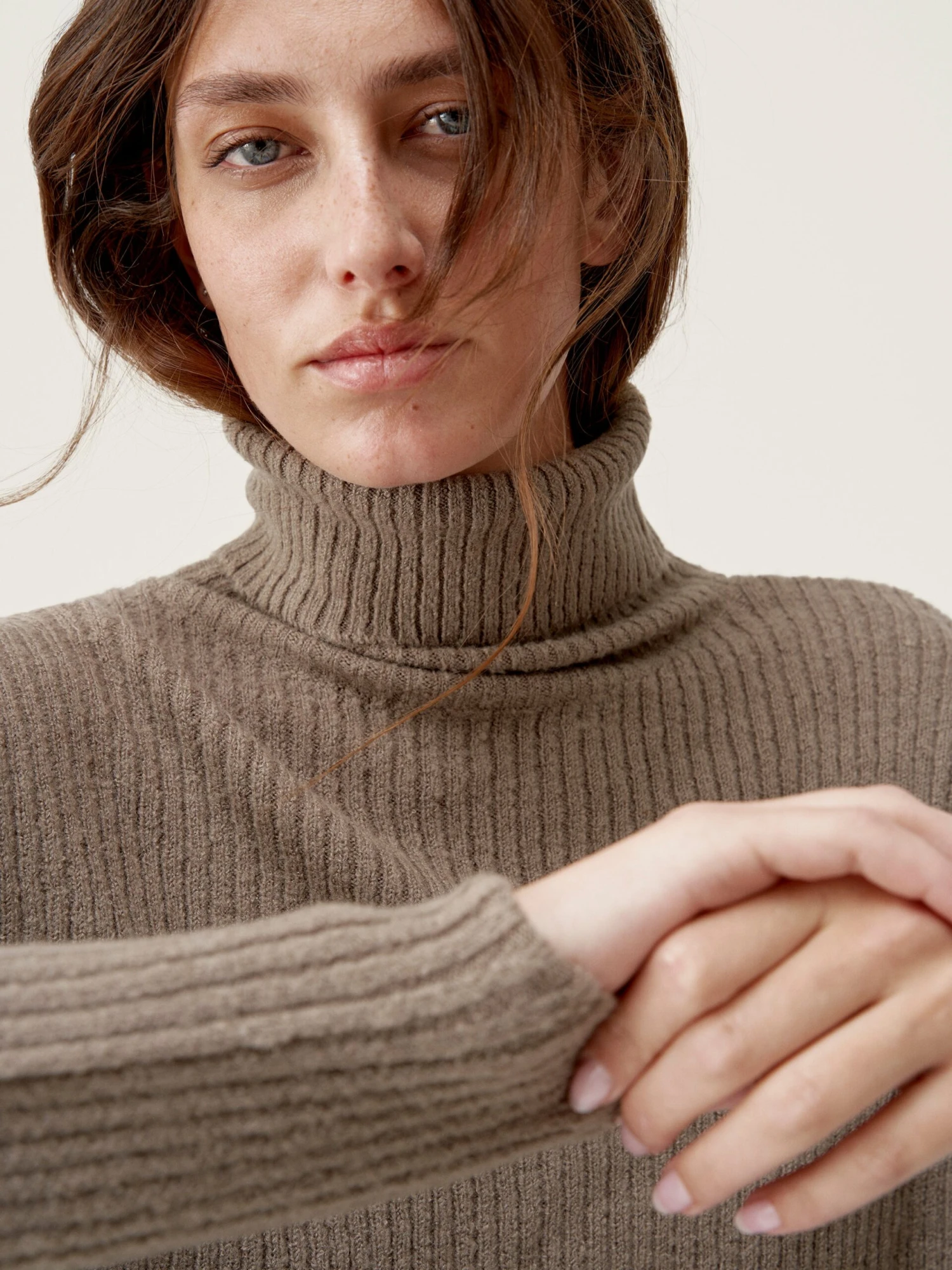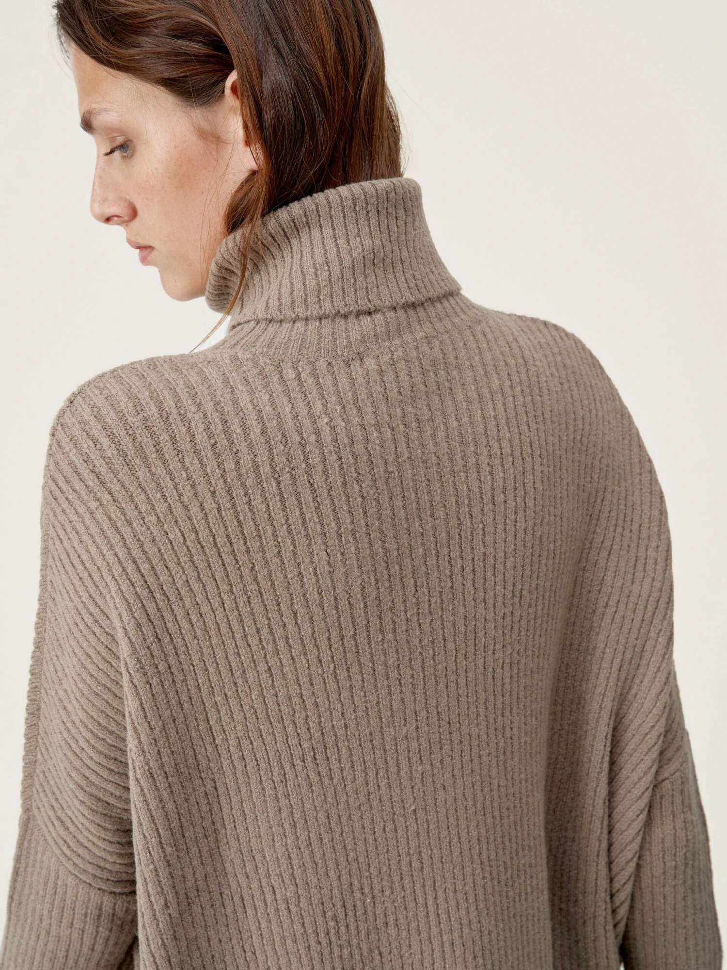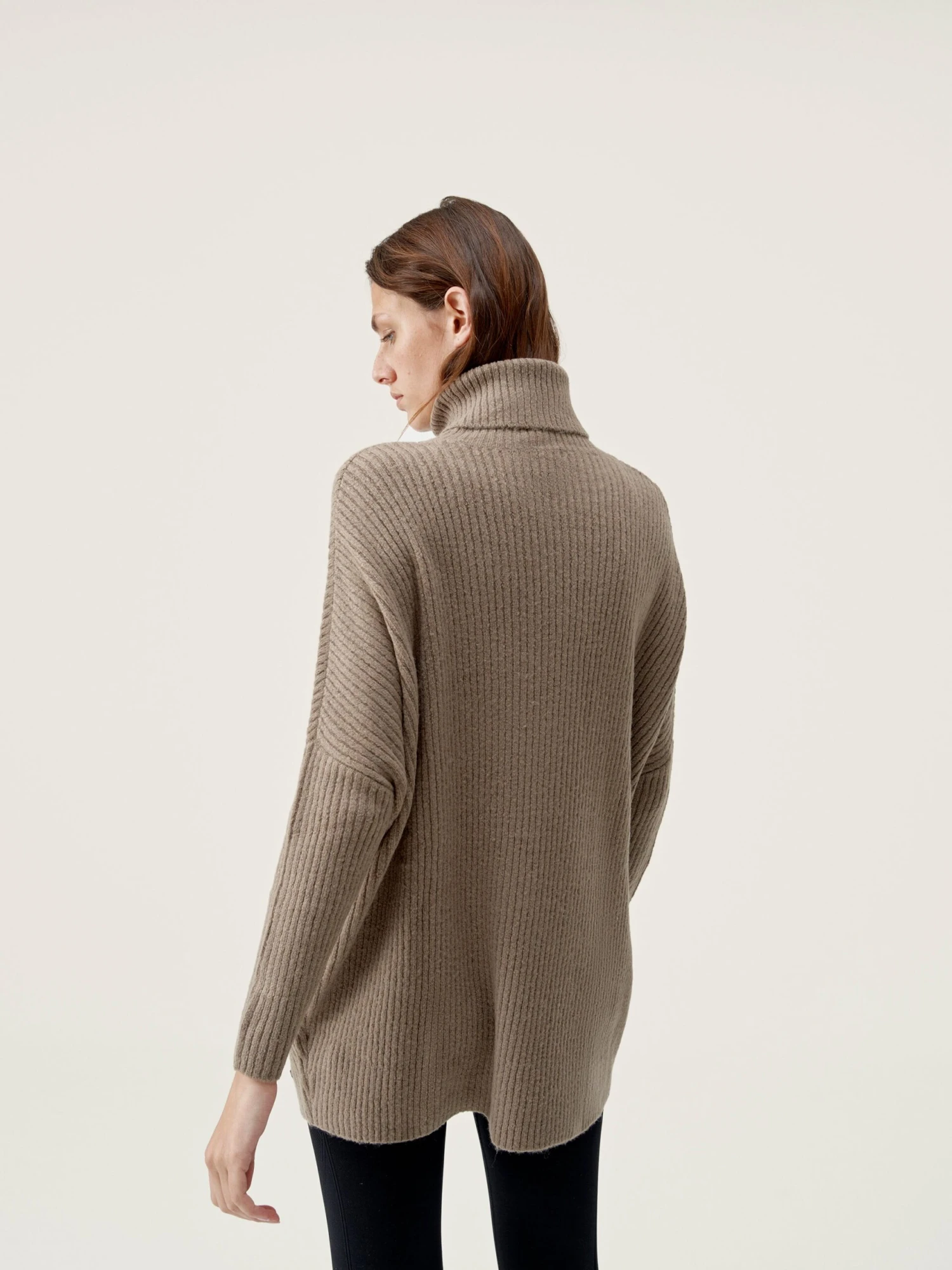 Jersey de patron oversize y hombro ca铆do, con cuello vuelto. Muy vers谩til para combinar con tus Leggings o cualquier otra prenda.