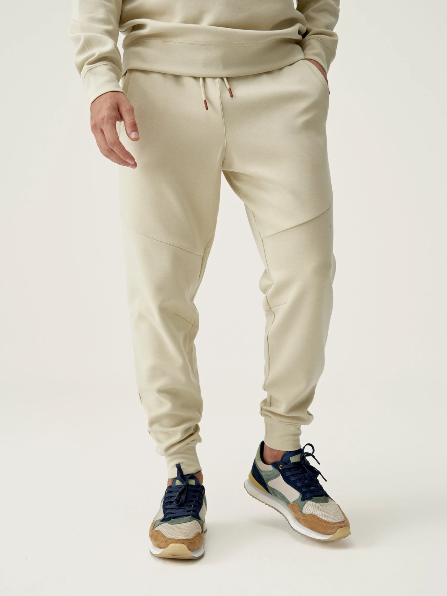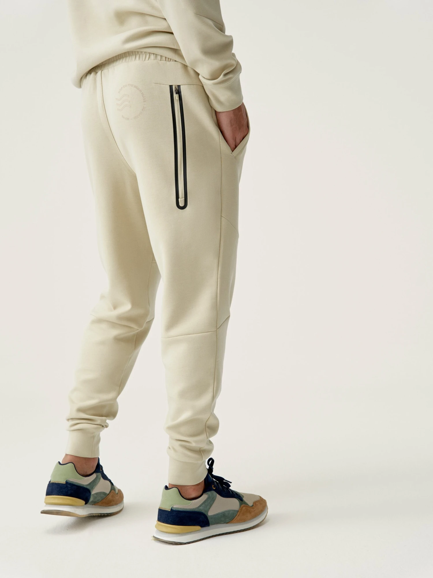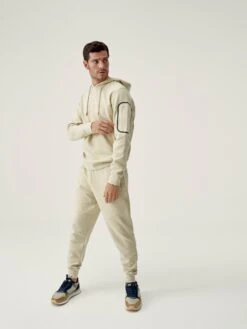 Pantalones deportivos largos. Tejido “Sku_Fly”. Bajos con puño y bolsillos laterales, cuenta con un bolsillo vertical con cremallera Heat sealing technology. Cordón ajustable.