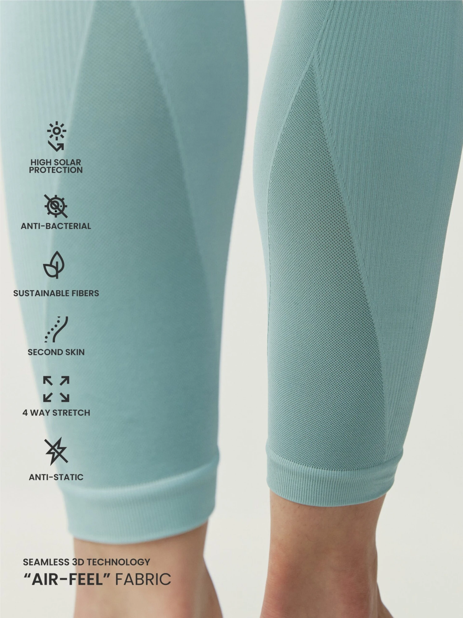 Legging 7/8. Tejido “Air_Feel” segunda piel con tecnología 3D. Cintura alta y doble para mayor ajuste. El diseño cuenta con diferentes texturas . Frontal con diseño de nervios en el centro para favorecer la silueta.