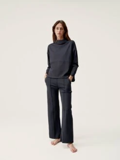 Pantalón largo y recto, con bolsillos laterales. Costura vertical delantera para un look elegante. Tejido “Skin_move”. Cintura media de ajuste perfecto.