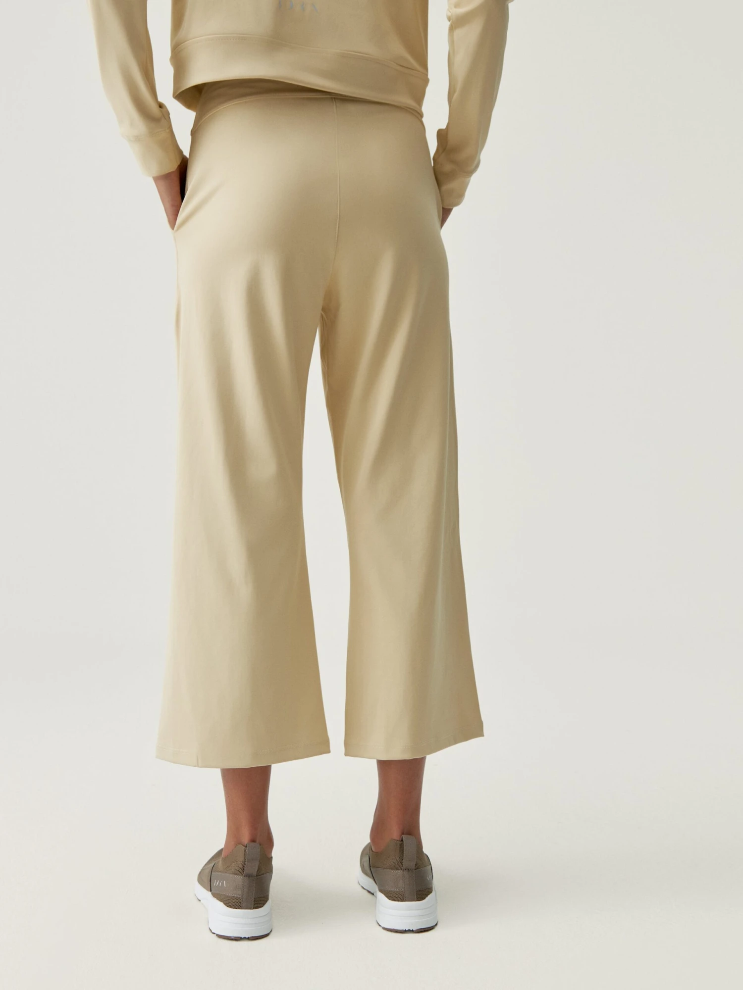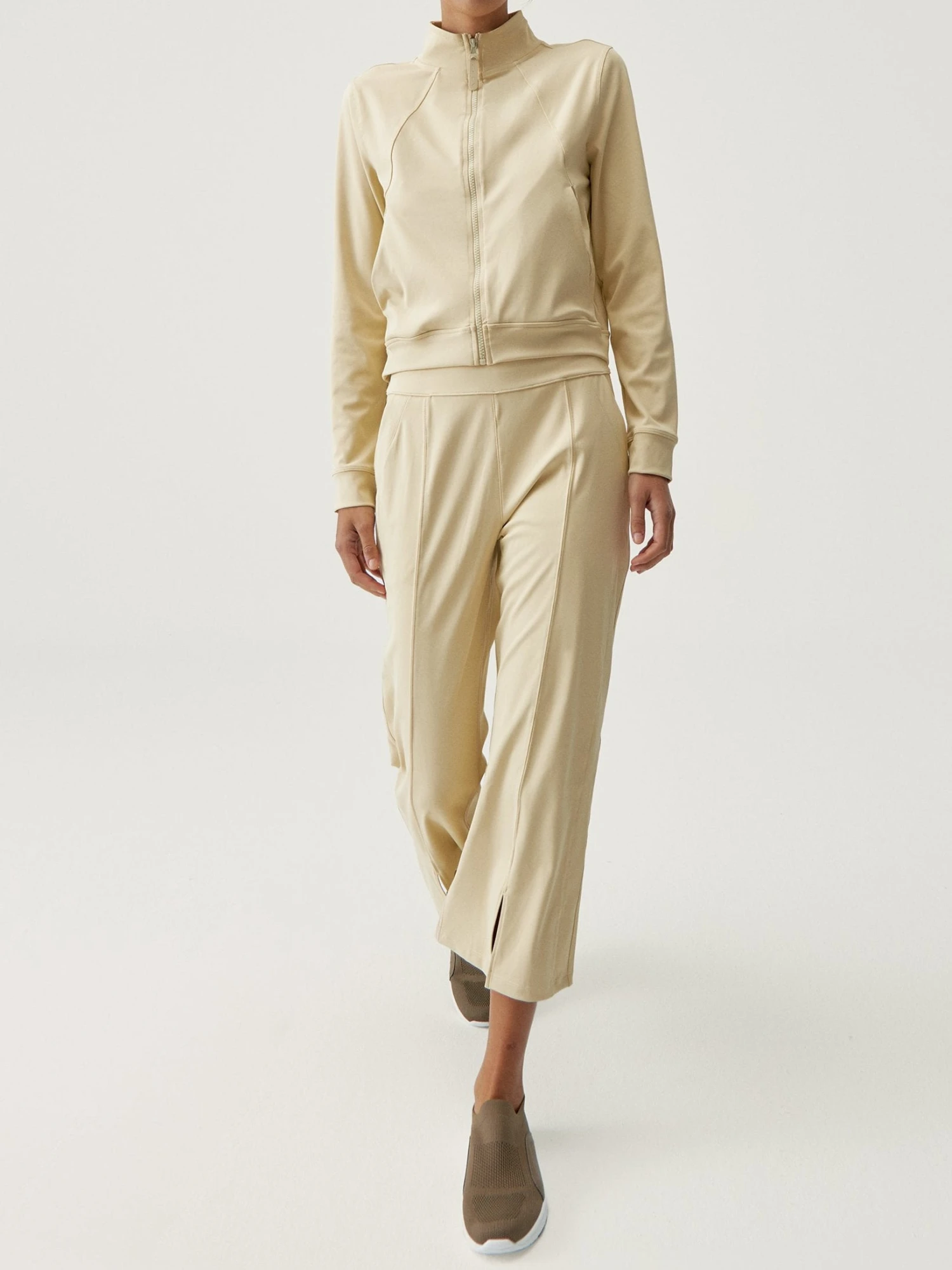 Pantalón tobillero y recto, con bolsillos laterales. Costura vertical delantera y aberturas frontales para un look elegante. Tejido “Skin_move”. Cintura media de ajuste perfecto.
