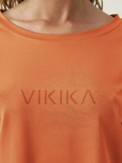 Camiseta deportiva con patr贸n que cubre el hombro. Efecto manga ca铆da. Bajo curvo. Tejido fluido. Logo al tono en pecho.