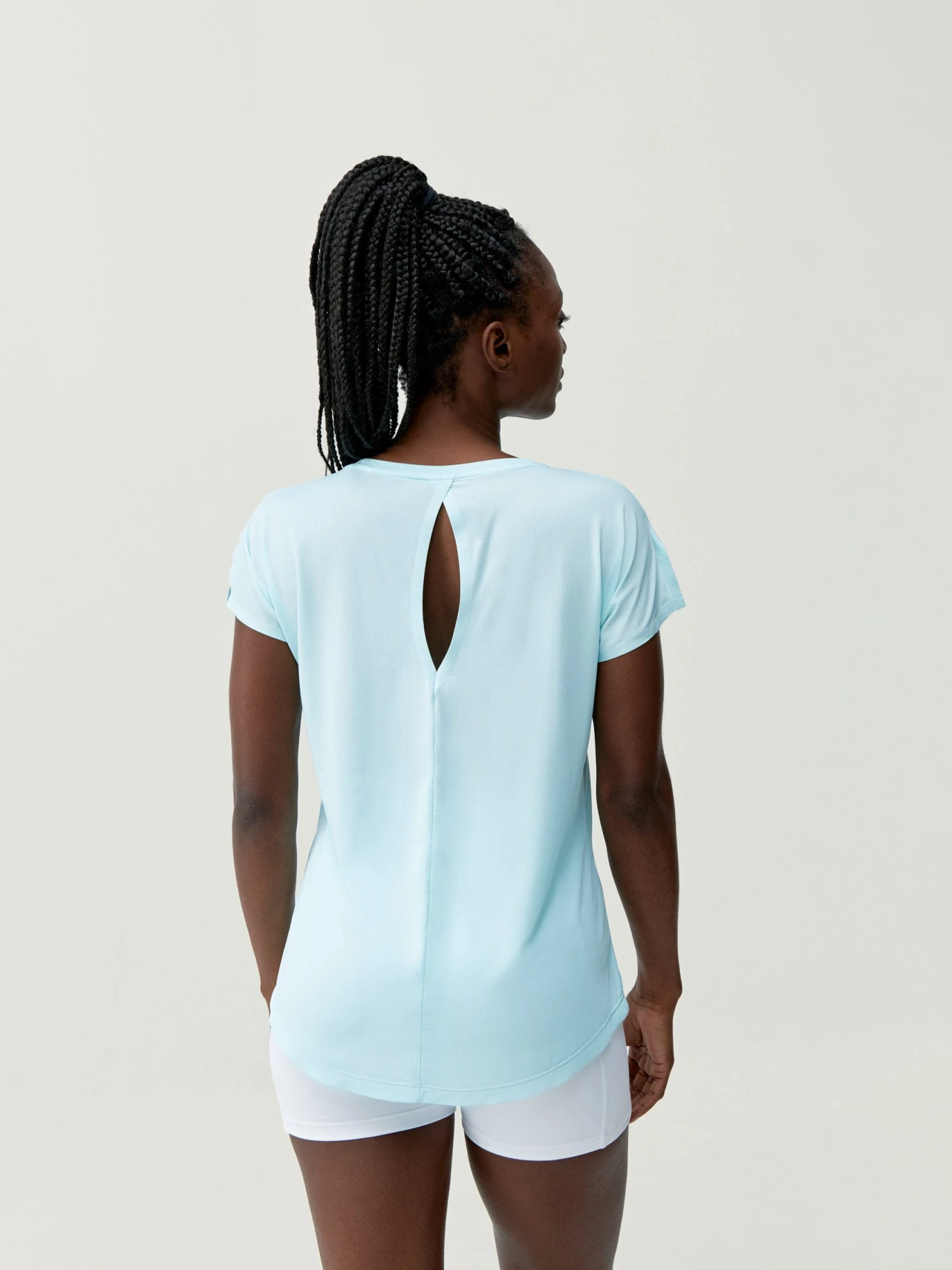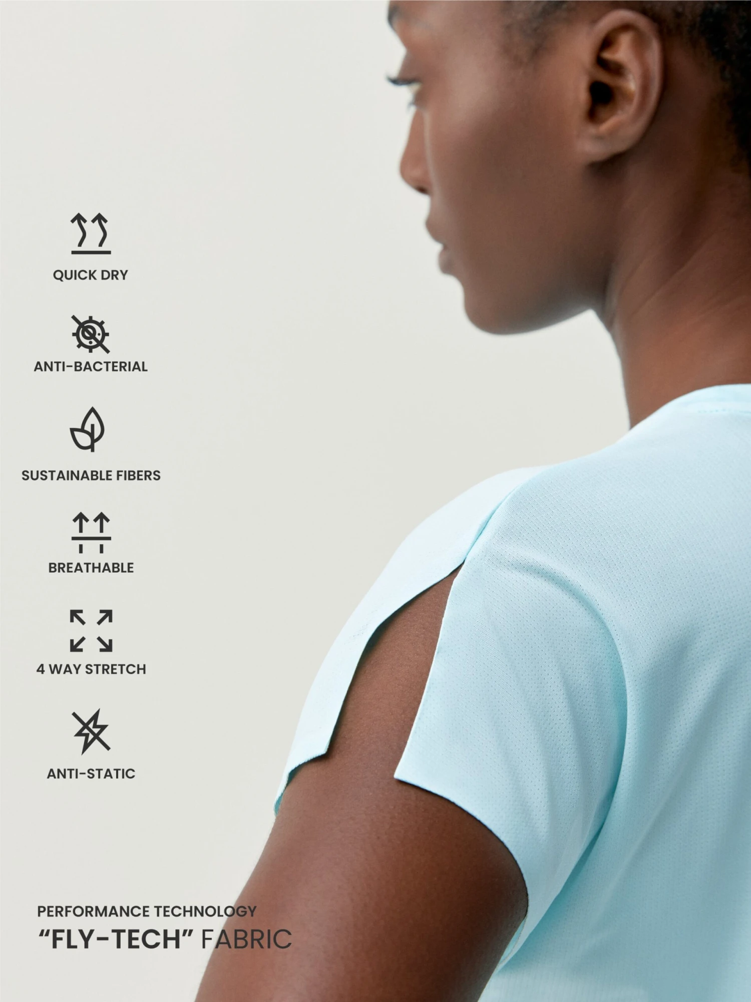 Camiseta deportiva con bajo ligeramente curvo. Tejido muy ligero. Hombros con aberturas con acabado termosellado. Dise帽o con diferente longitud en el frontal y la espalda para favorecer la ca铆da. Abertura en la espalda para una mejor transpirabilidad.