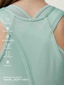 Camiseta deportiva ligera sin mangas. Cuello redondo de corte atl茅tico. Espalda cruzada con abertura para proporcionar mayor transpirabilidad. Bajo curvo, tejido c贸modo y fluido.