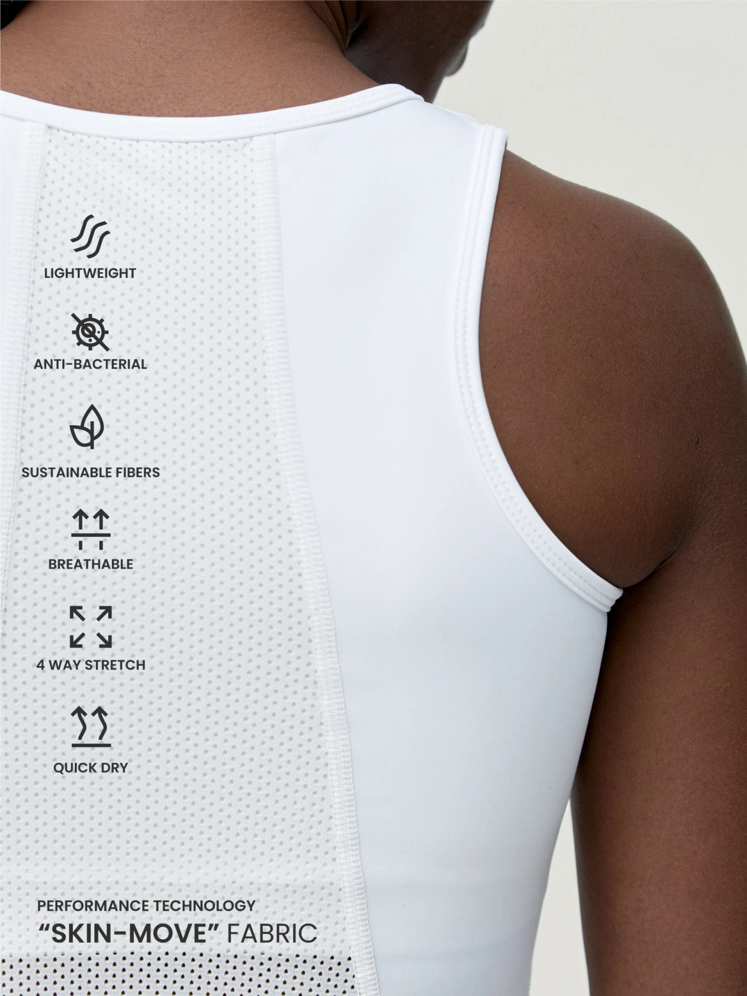 Camiseta con sujetador incorporado de sujeción media. Tejido “Skin_Move”, espalda con pieza de mesh para mejorar la transpirabilidad.