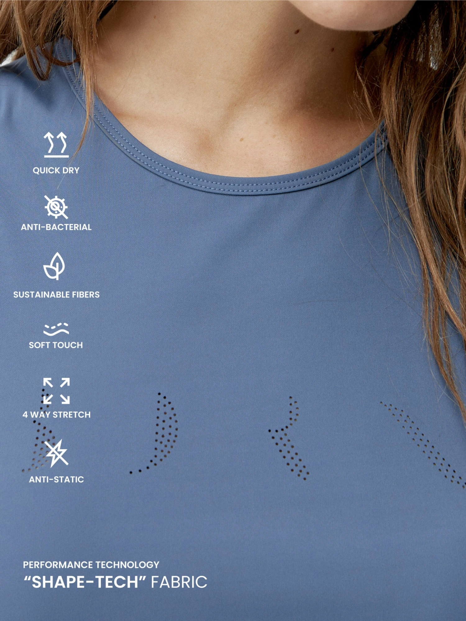 Camiseta t茅cnica con tejido ligero y traspirable con aberturas laterales. Trasera con perforado laser y motivo puntos reflectantes.