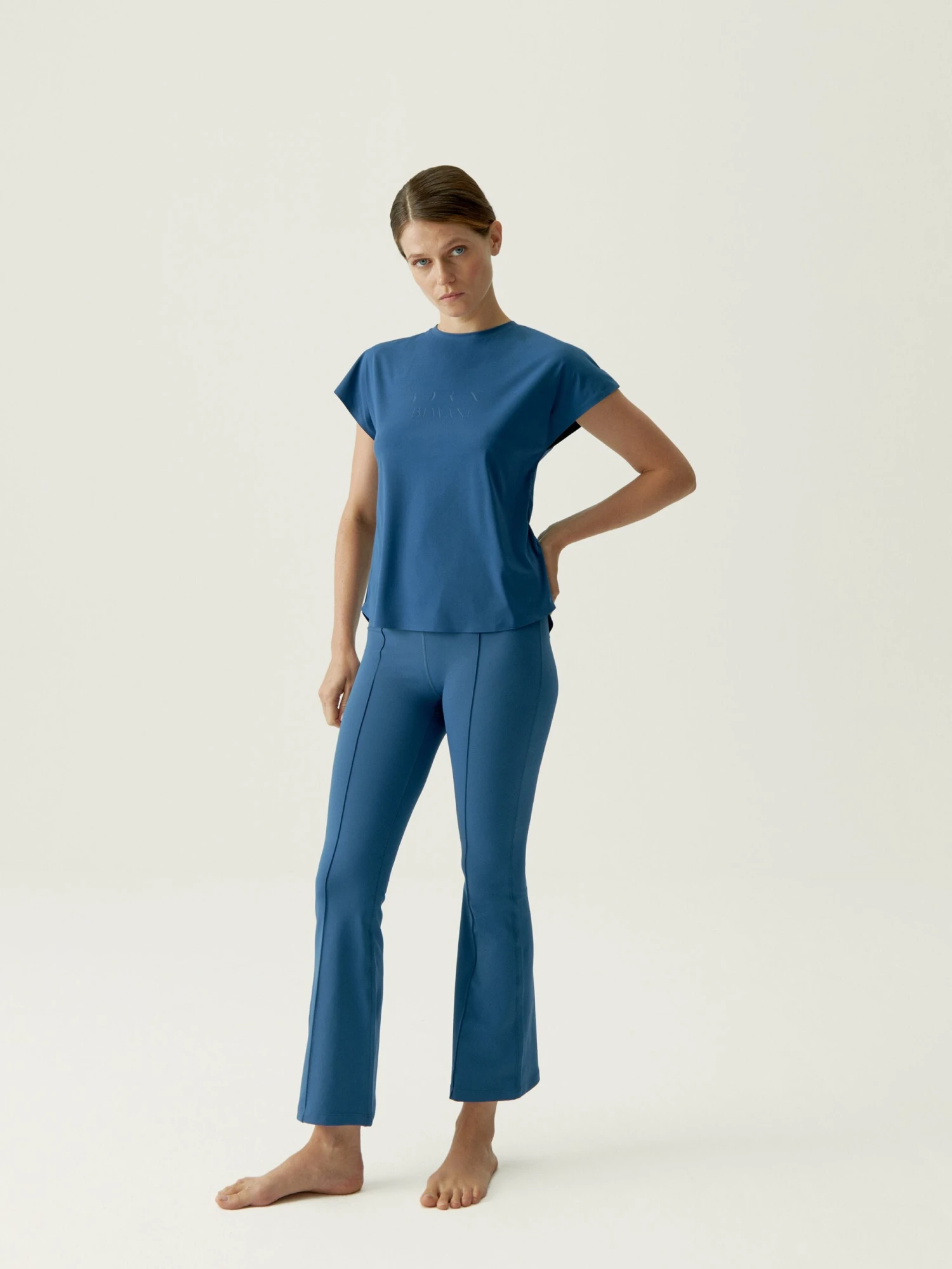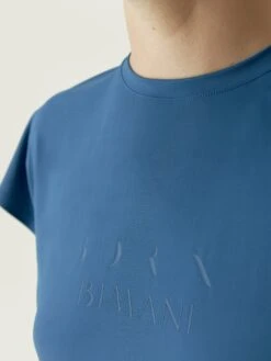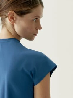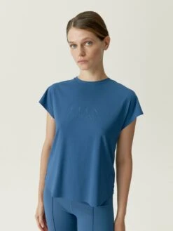 Camiseta deportiva con patrón efecto hombro caído con logo al tono en el pecho. Tejido tech fluido, con bajo curvo para acompañarte en todos tus movimientos. Tejido “Shape_Tech” con tecnología Performance.