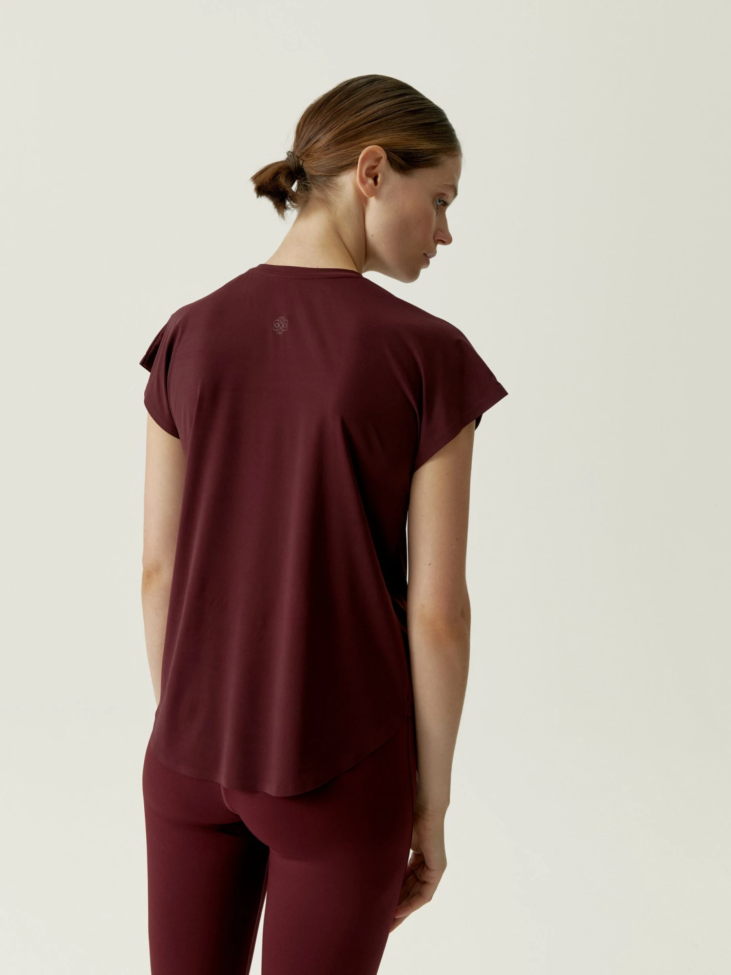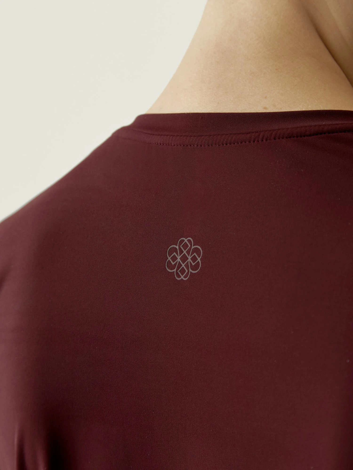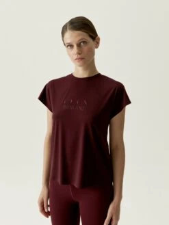 Camiseta deportiva con patrón efecto hombro caído con logo al tono en el pecho. Tejido tech fluido, con bajo curvo para acompañarte en todos tus movimientos. Tejido “Shape_Tech” con tecnología Performance.