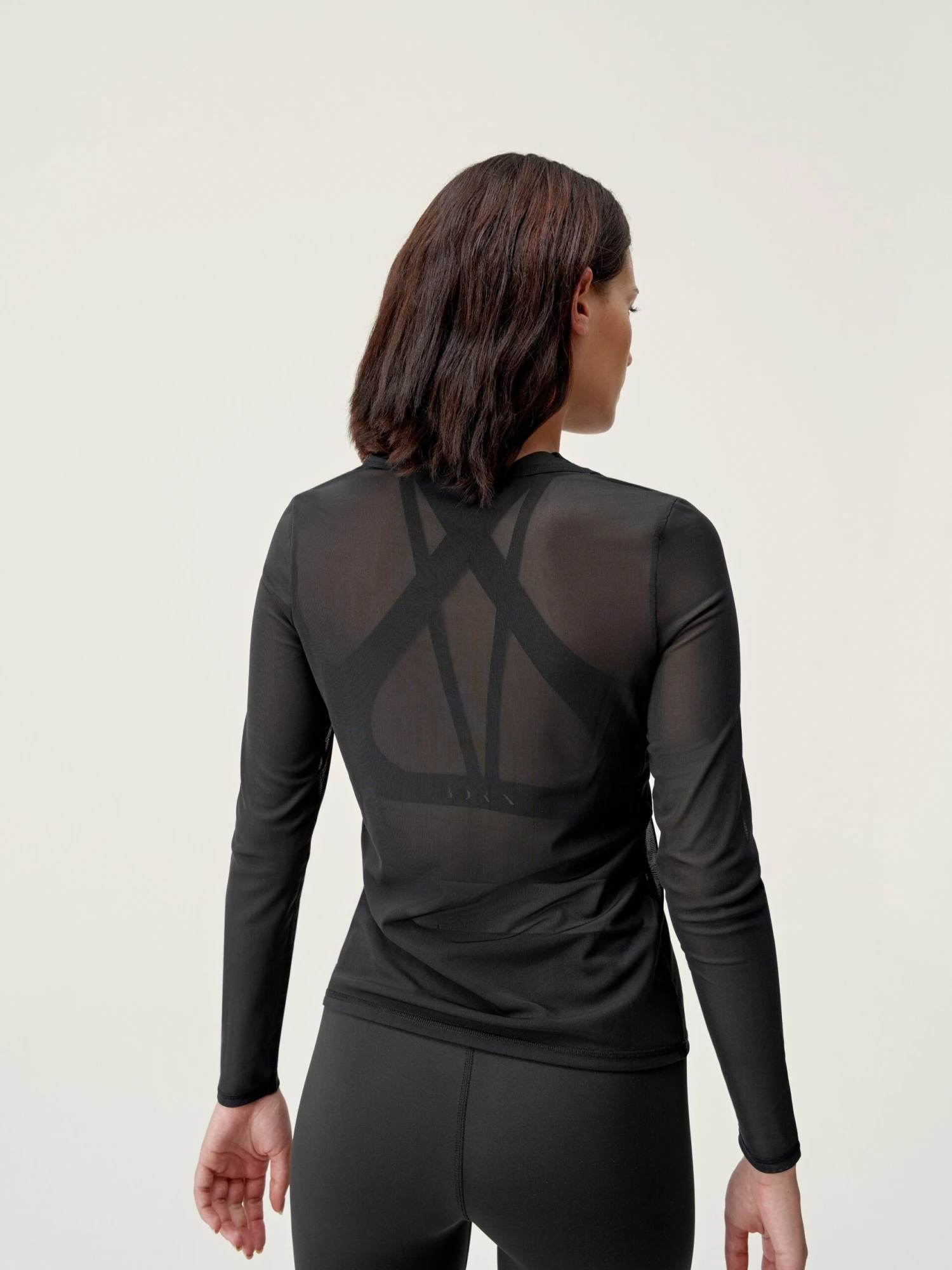 Camiseta manga larga confeccionada con tejido mesh el谩stico. Es muy vers谩til, perfecta para el momento Savasana, para el gym o para un look sofisticado. Tejido mesh, para una mayor transpirabilidad.
