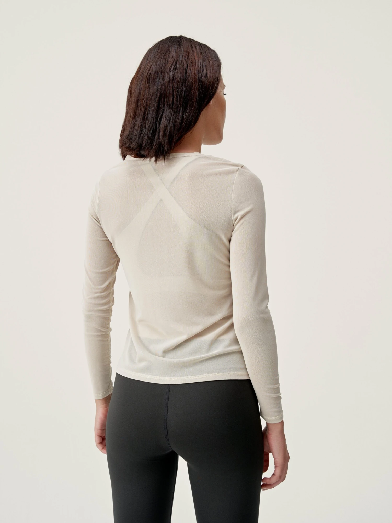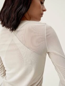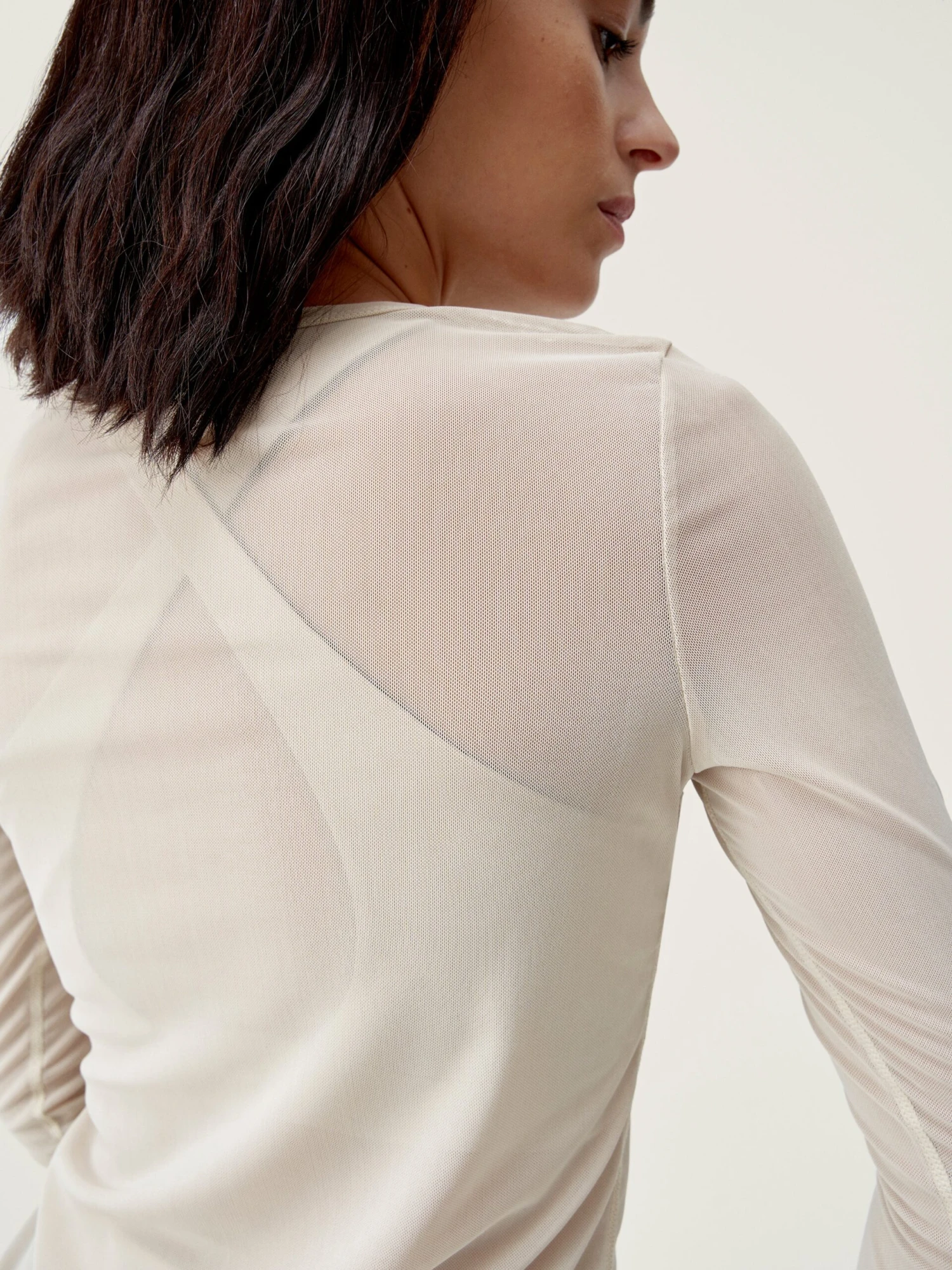 Camiseta manga larga confeccionada con tejido mesh el谩stico. Es muy vers谩til, perfecta para el momento Savasana, para el gym o para un look sofisticado. Tejido mesh, para una mayor transpirabilidad.