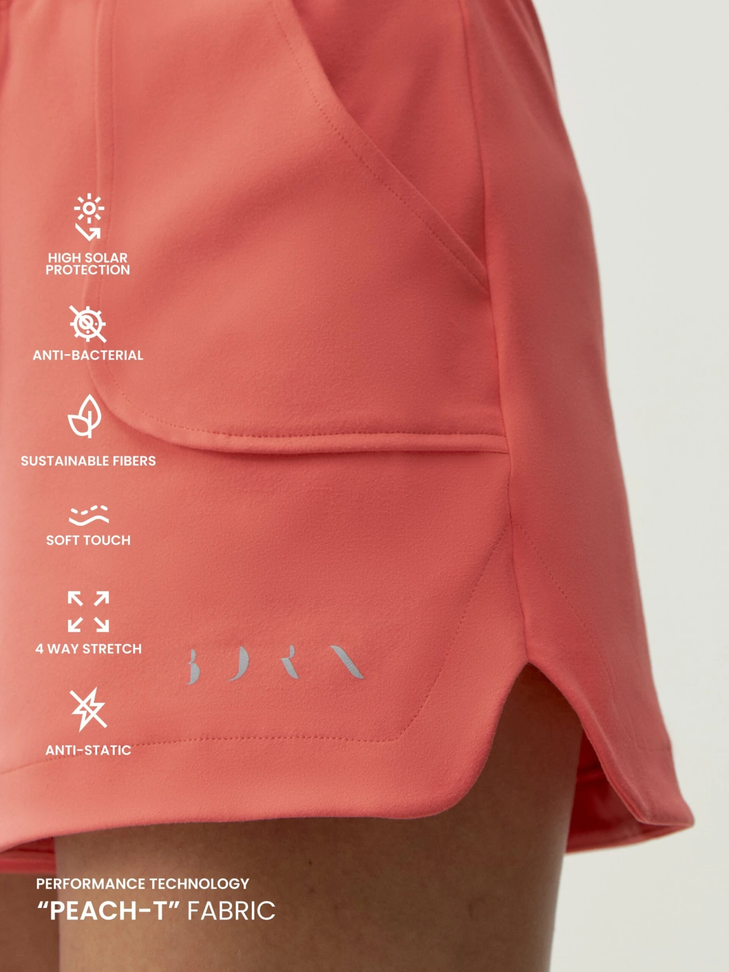 Short deportivo amplio con aberturas laterales. Tejido “Peach_T”. Muy versátil para todo el día. Muy cómodo de look casual.