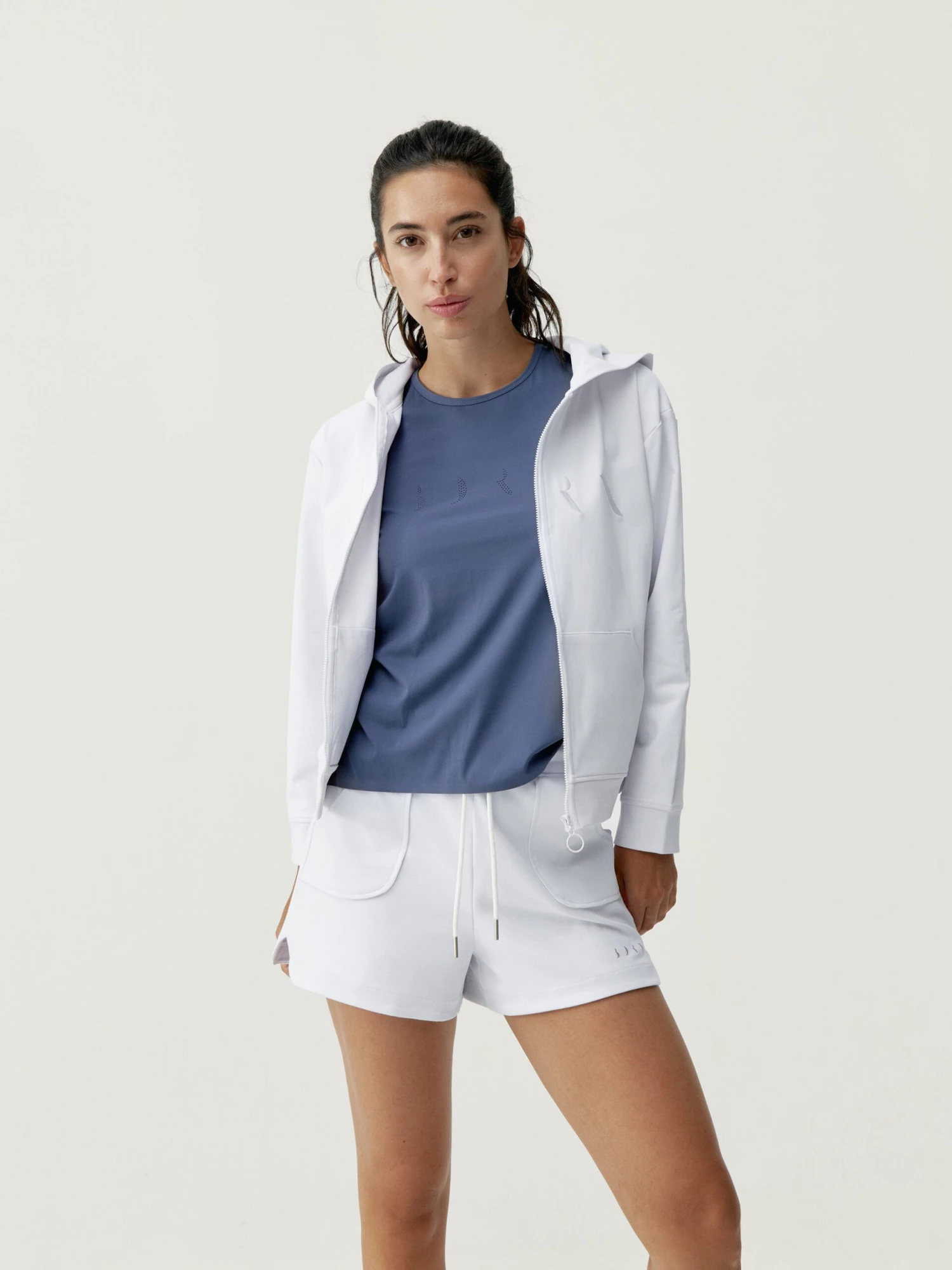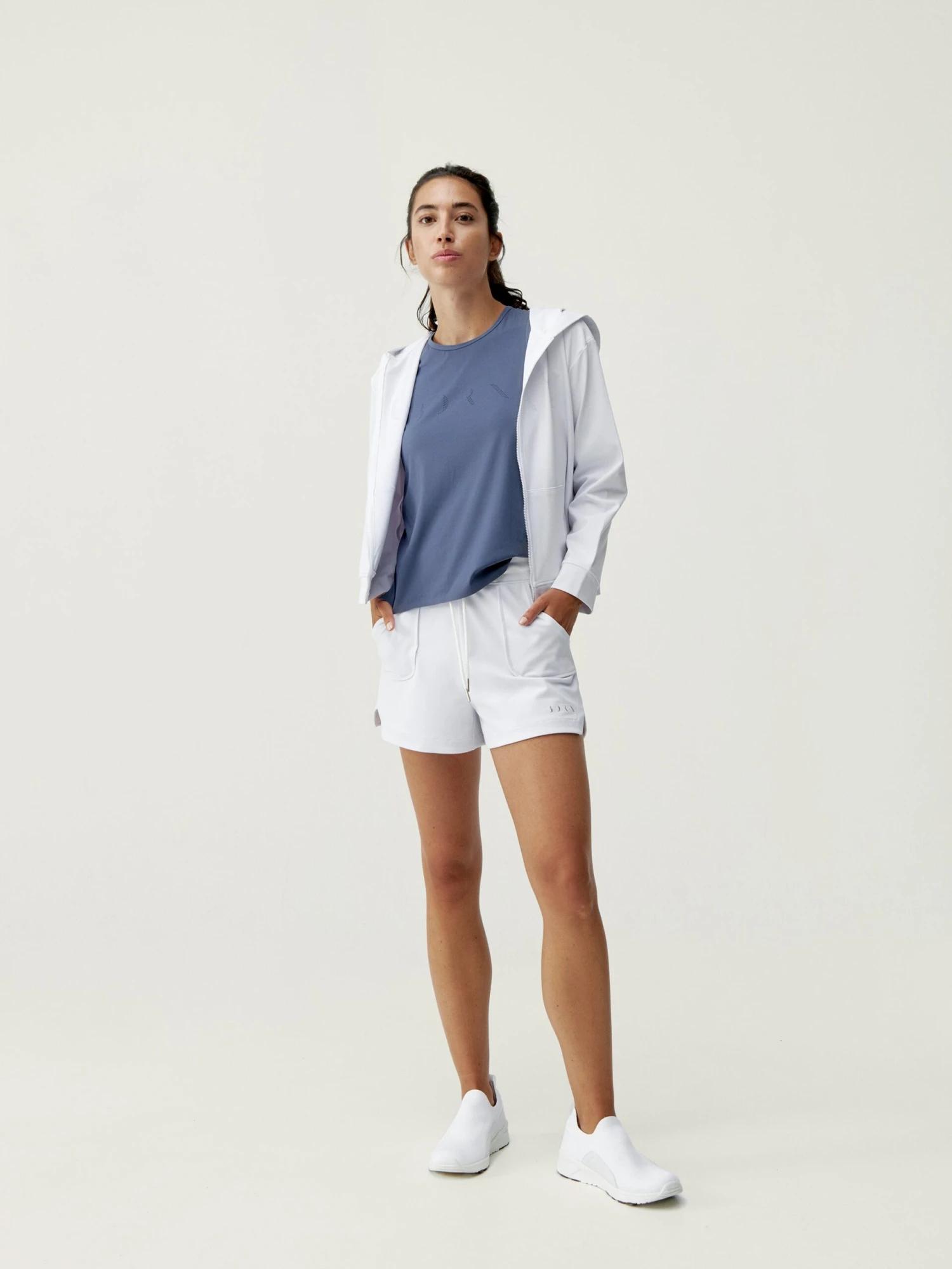 Short deportivo amplio con aberturas laterales. Tejido “Peach_T”. Muy versátil para todo el día. Muy cómodo de look casual.