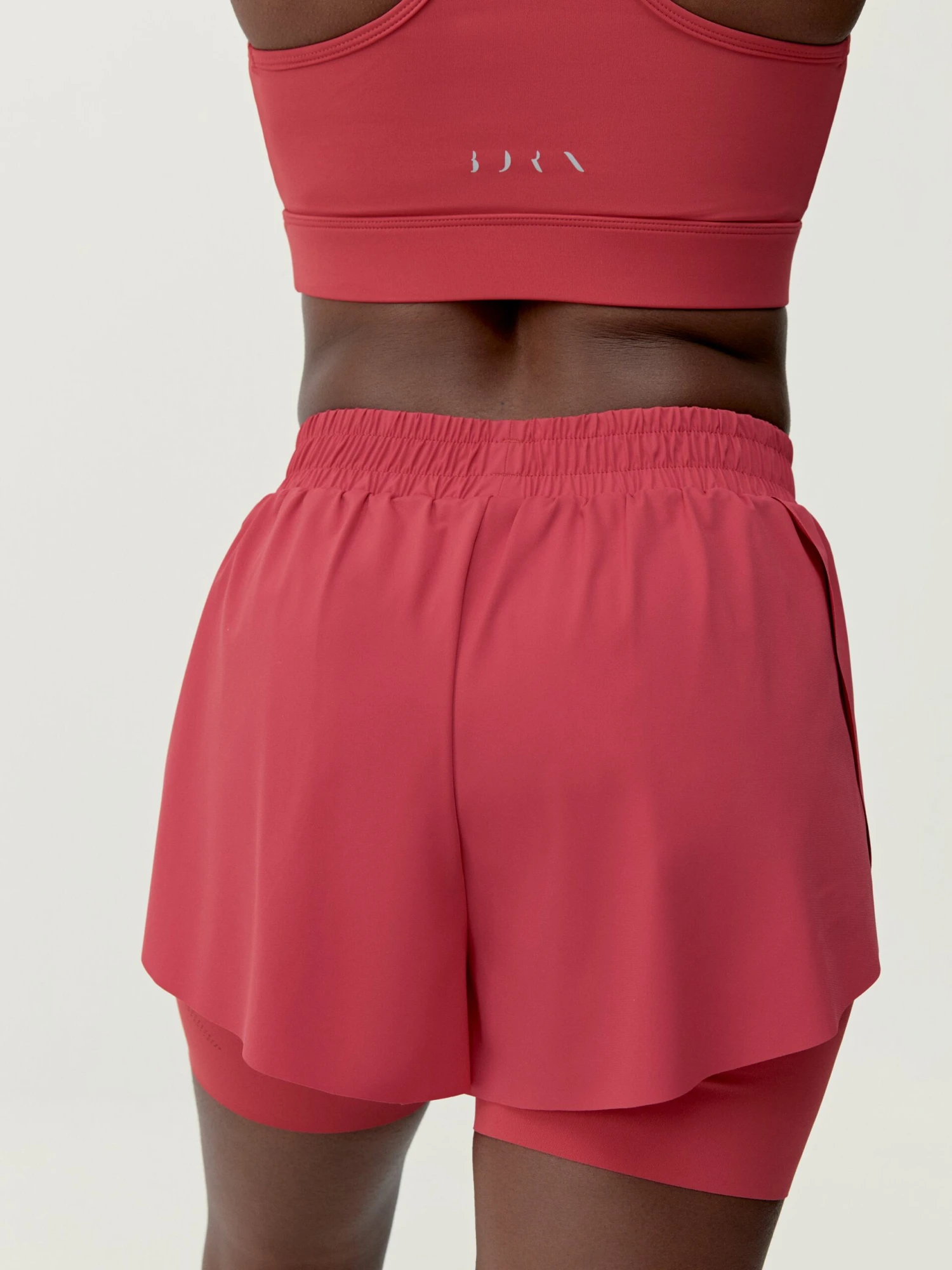 Doble short – Tejido interior “Shapplex_B”. con acabado laser y logo troquelado. Cintura elástica muy cómoda. Tejido técnico ultraligero para el short exterior.