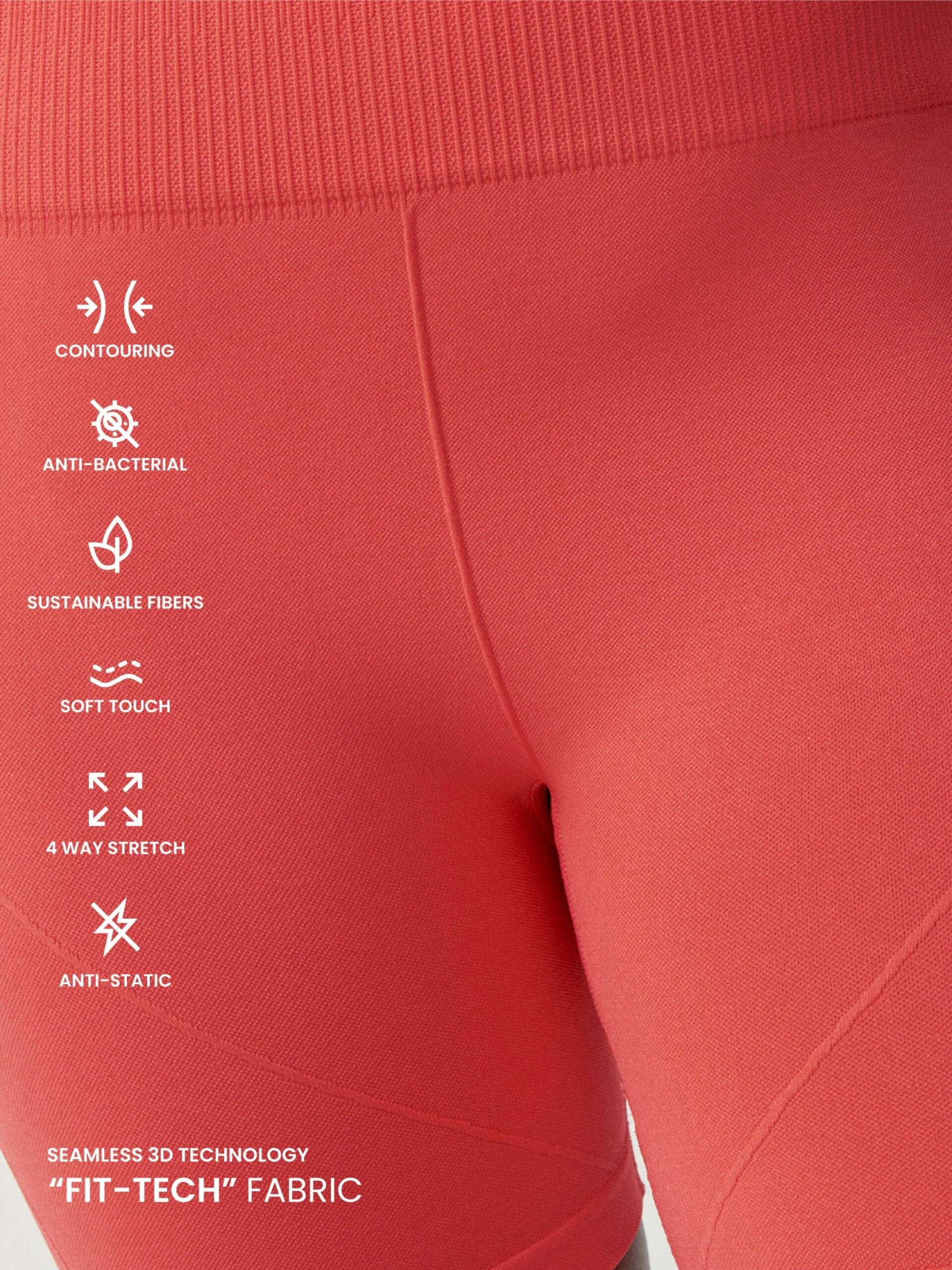 Short con tejido “Fit_Tech” Diseño moldeador. Con tecnología 3D. Cintura alta y doble, para mayor ajuste. Nervios frontales para favorecer la figura. Punto doble en zonas estratégicas.