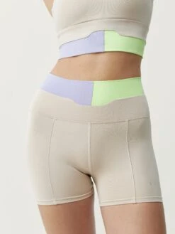 Short con diseño tricolor. Tejido “Shapplex_B”. Cintura muy favorecedora dividida en tres piezas y con doble tejido. Costuras planas creando formas que favorecen. Permite realizar cualquier tipo de actividad física.