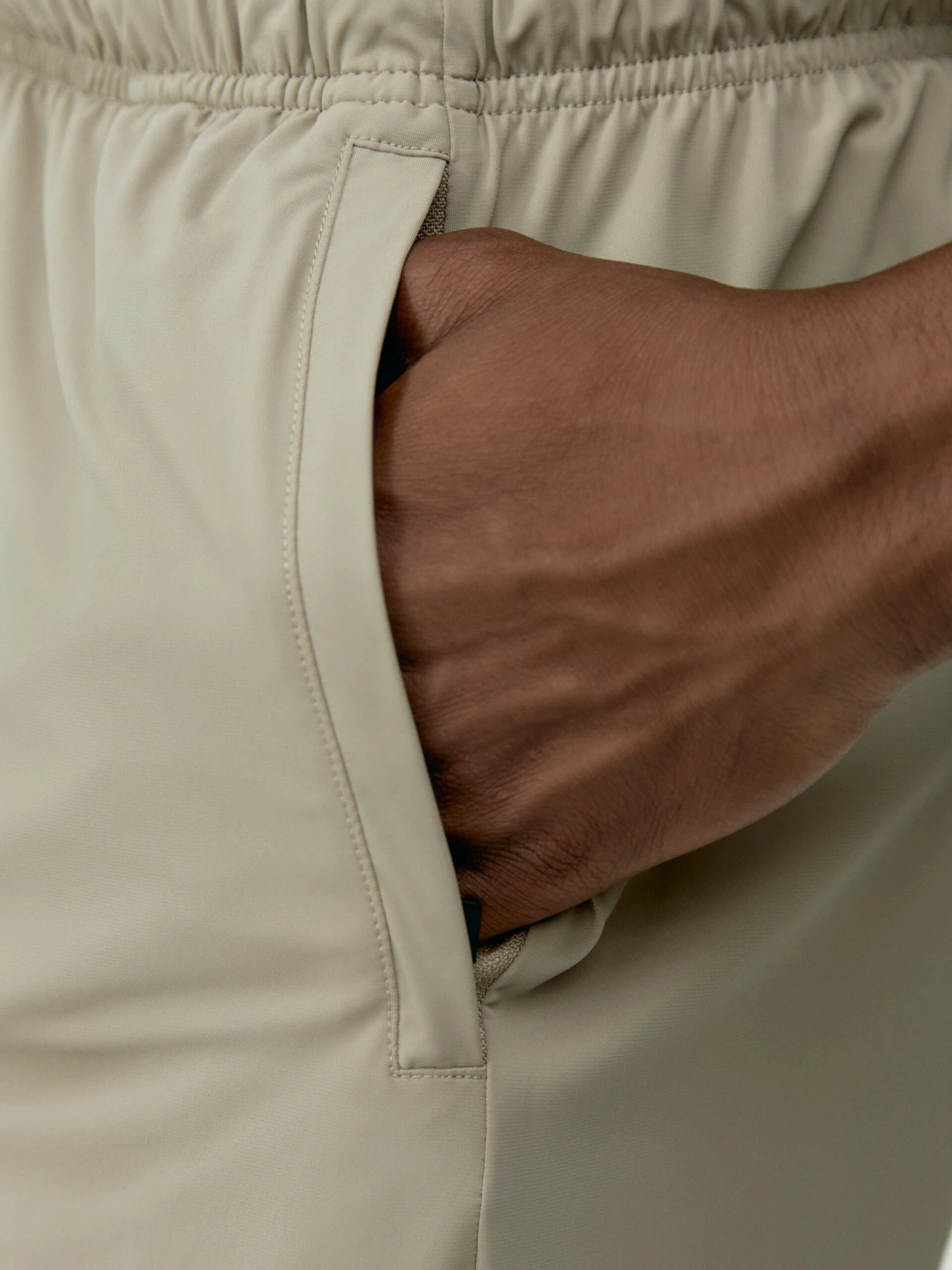 Pantalón corto deportivo, con acabado Heat sealing en los bajos. Tejido “Air_Tech” elástico, ligero y confortable. Cuenta con dos bolsillos con cremallera y cinta interior para colgar, además de un reflectante lateral. Cordón ajustable.