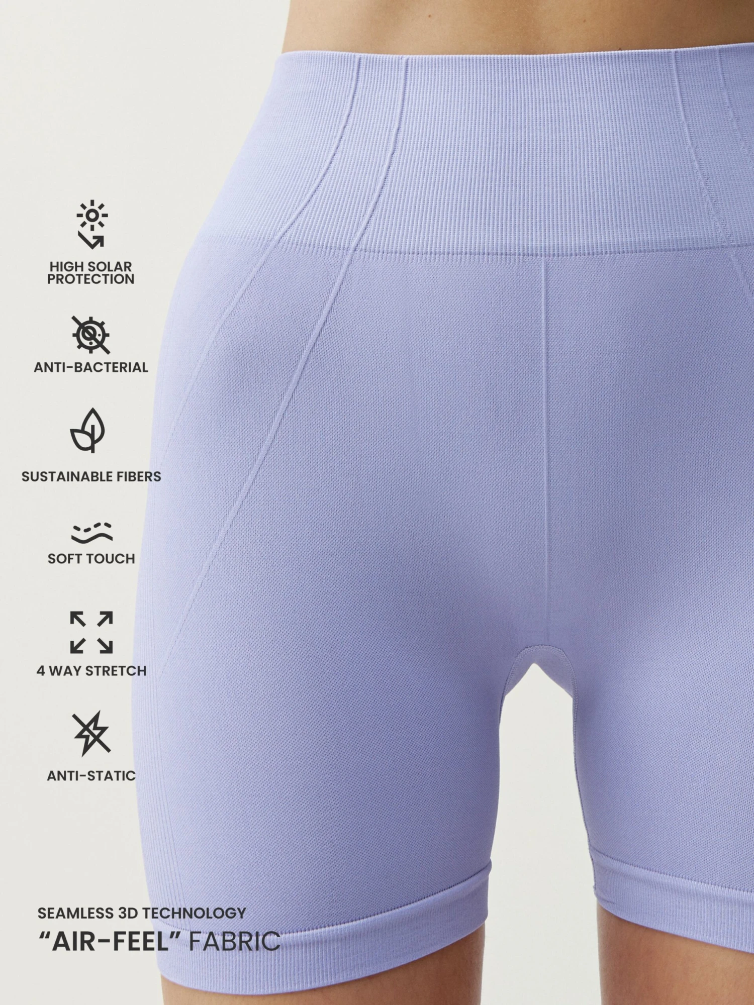 Short de tacto suave con tejido Seamless 3D. Air_Feel con protección solar UPF+40. Elasticidad 4 Way Stretch que aporta comodidad y libertad de movimiento, perfecto para la practica de Bikram, entrenamiento funcional, hit, running.