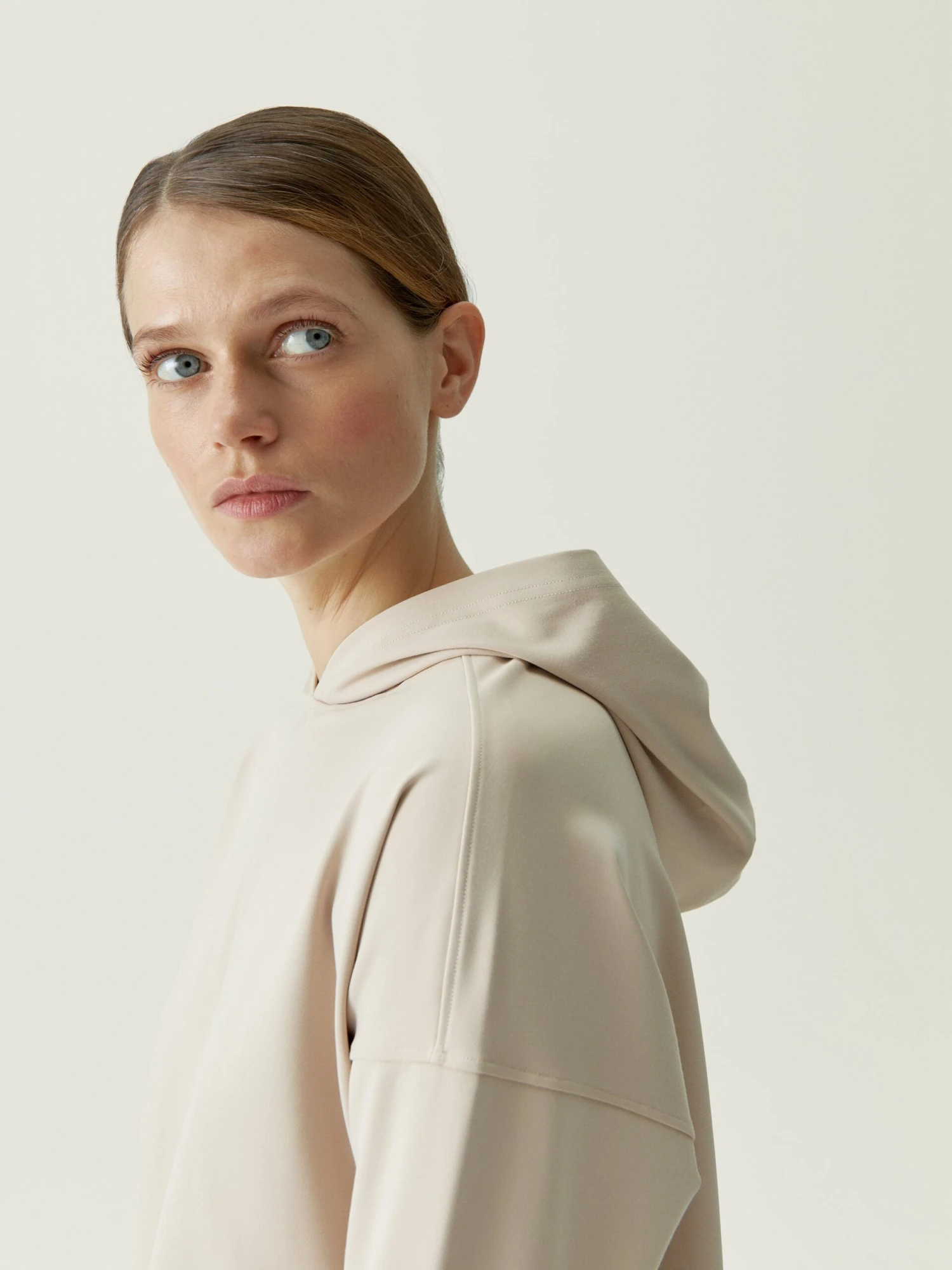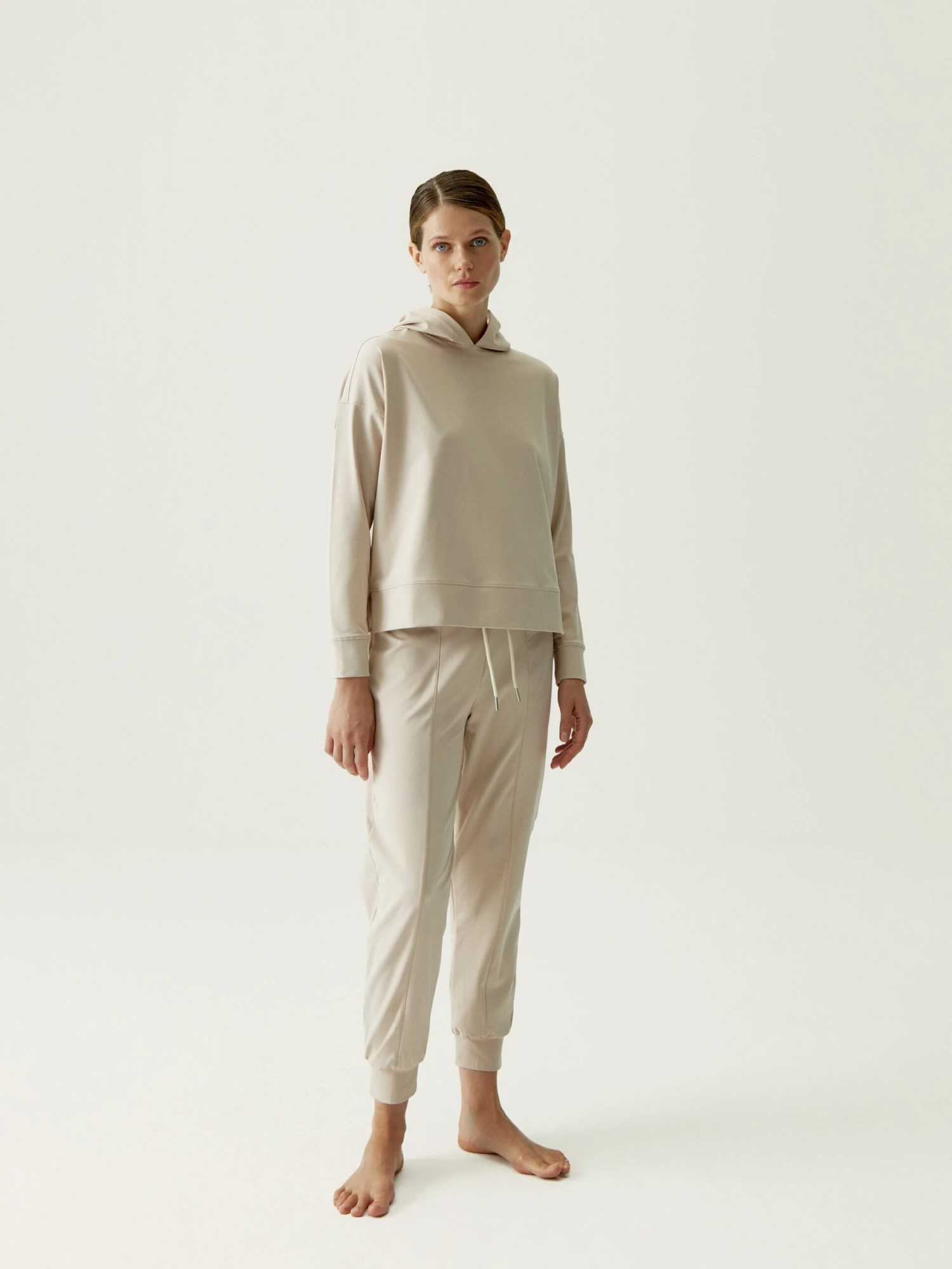 Sudadera deportiva con capucha patrón recto. Tejido “Peach_T” tacto super suave. Perfecta para antes y después de tus clases o para tu tiempo libre.