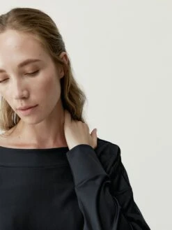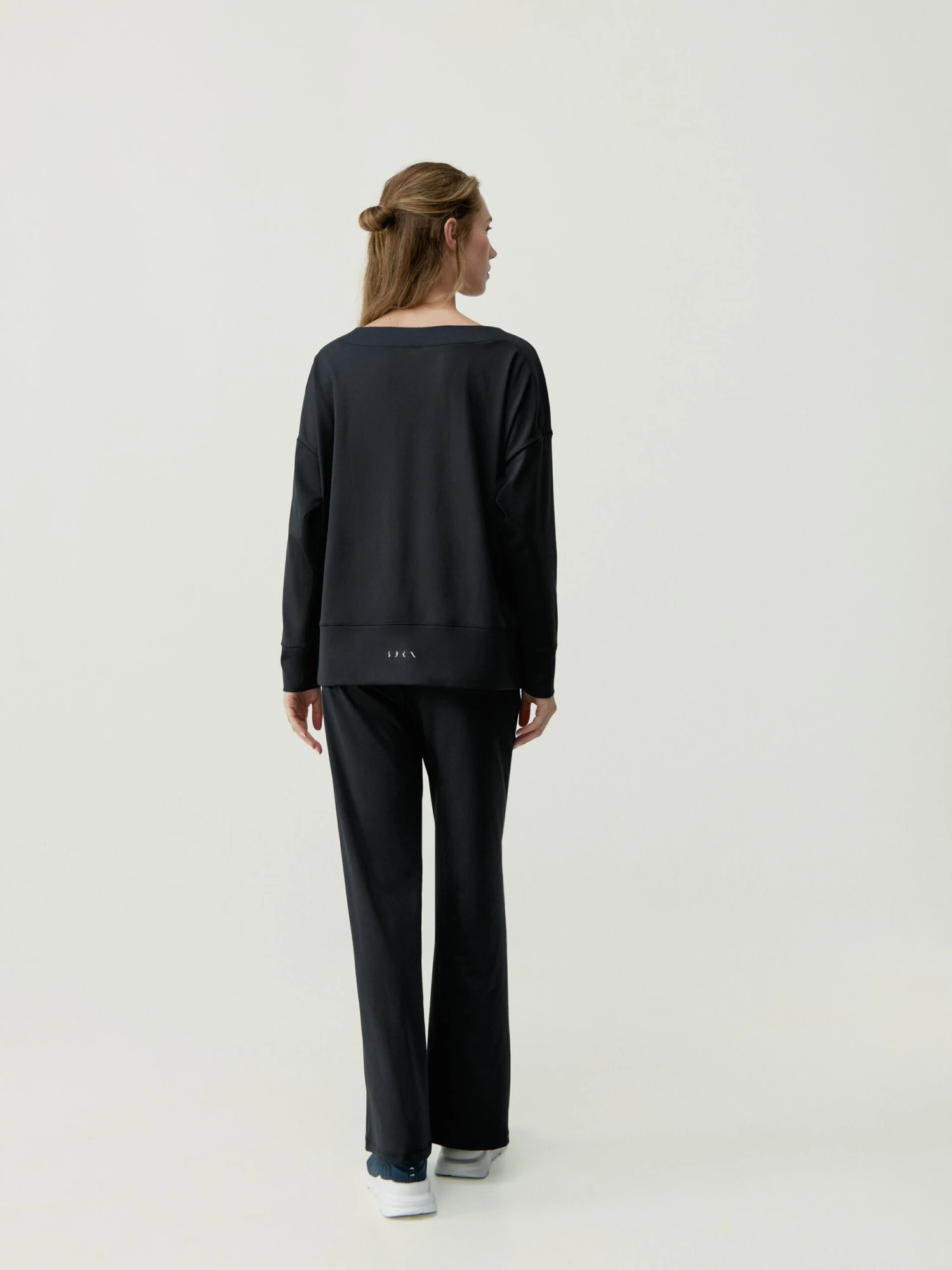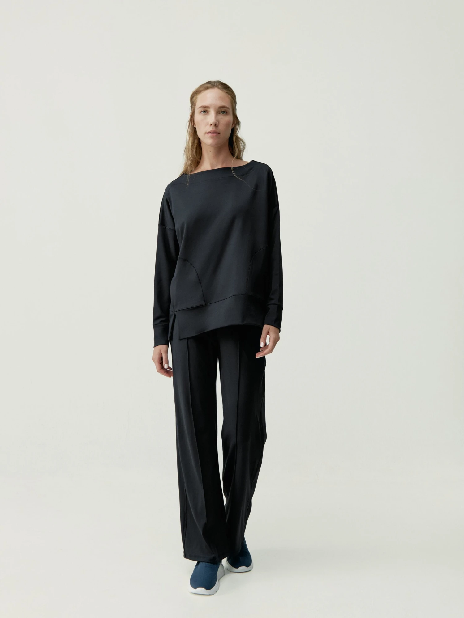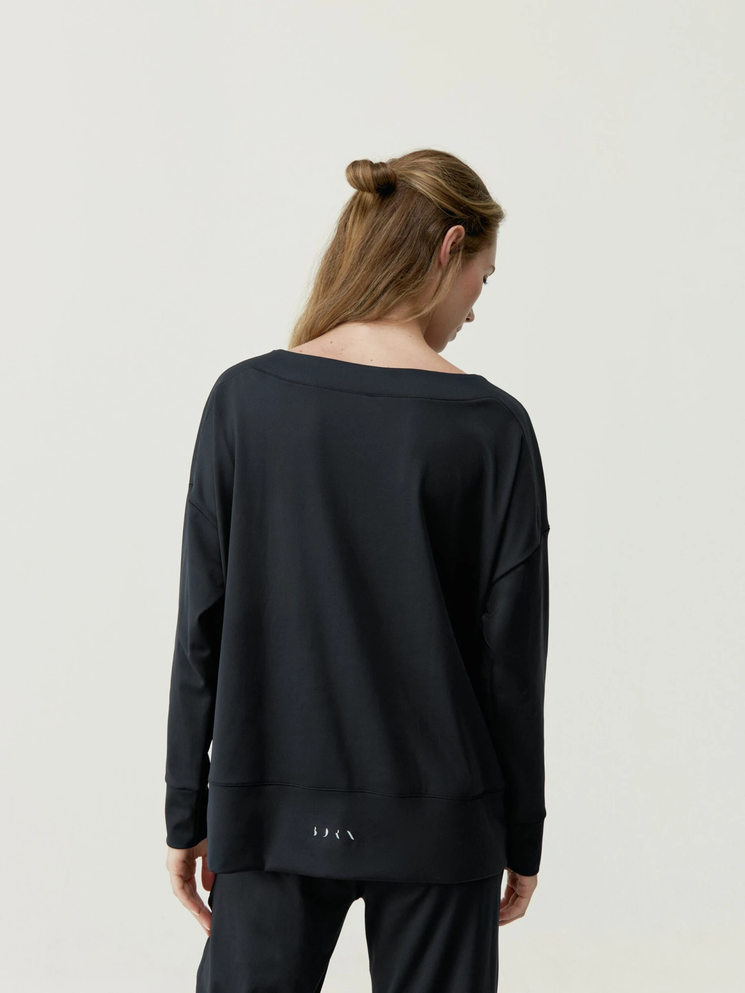 Sudadera casual con tejido “Skin_Move” y tecnología Performance. Patrón oversize con escote barco “T” y bajo redondeado con la parte trasera ligeramente más larga.