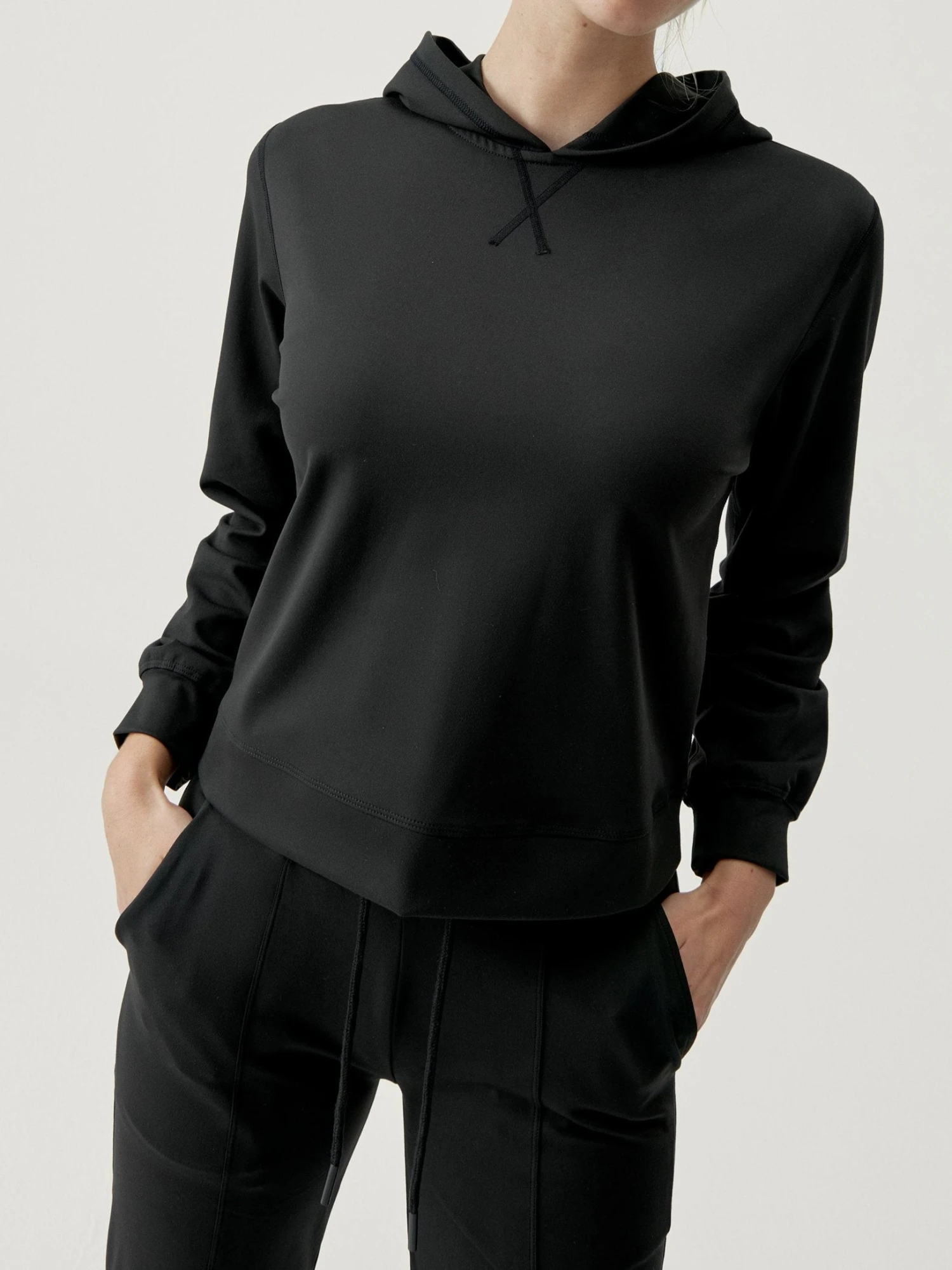 Sudadera deportiva con capucha de patrón recto. Tejido “Peach_T”. Muy versátil.