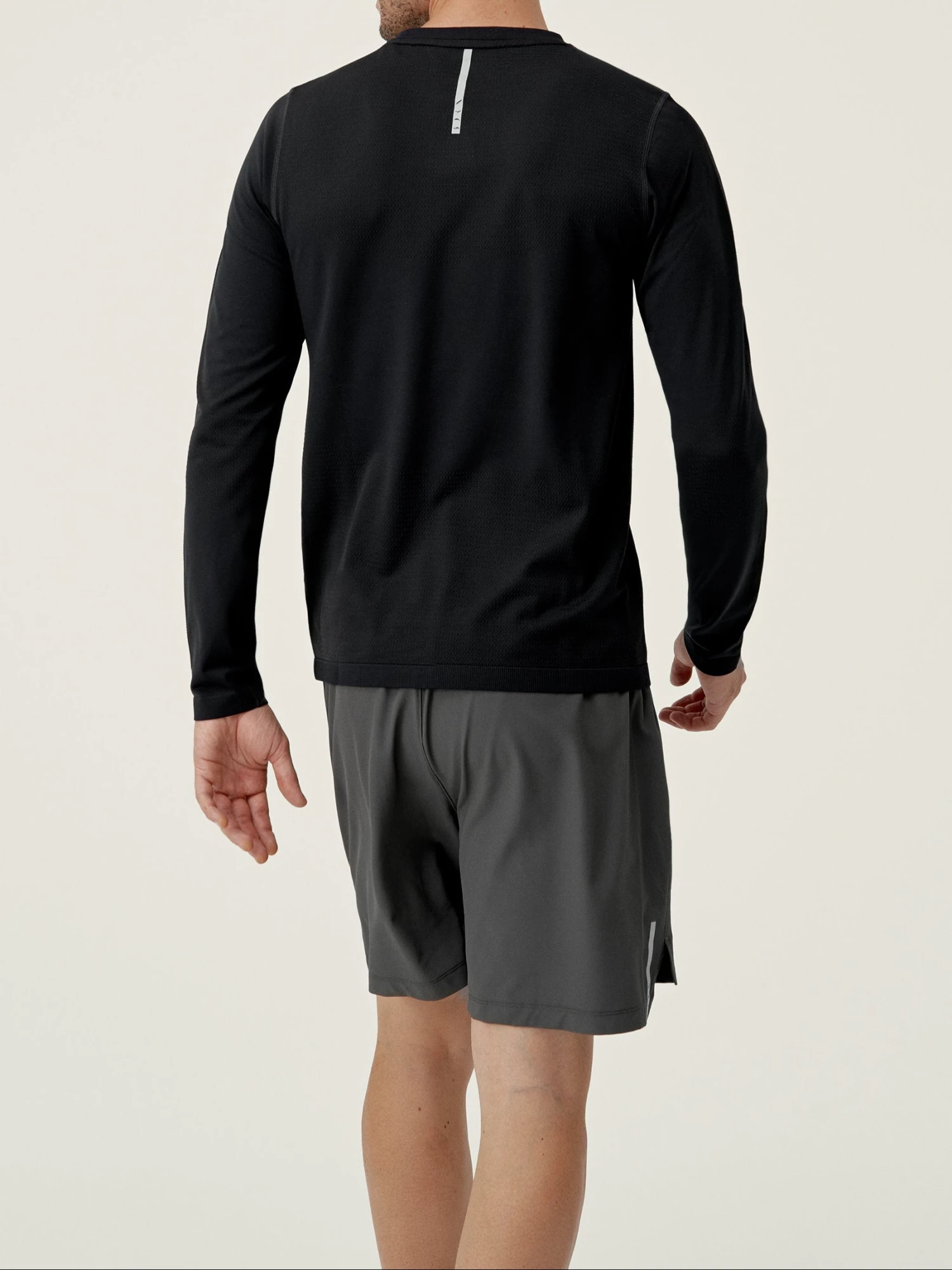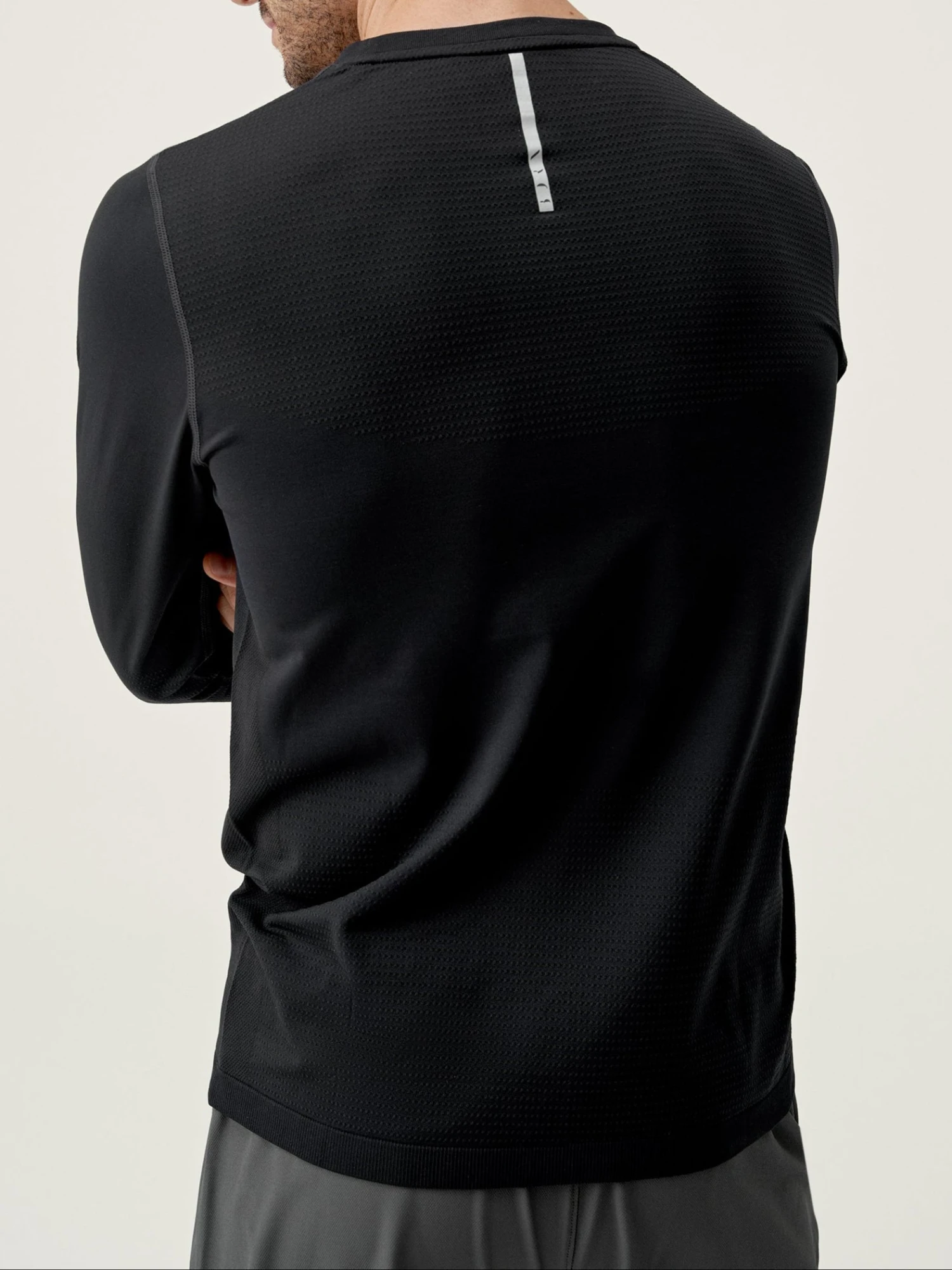 Camiseta técnica manga larga. Tejido tecnología 3D “Air_feel” ligero, elástico y confortable, para llegar a todos tus movimientos. Con diferentes texturas estratégicas para proporcionar mayor transpirabilidad. Cuenta con una banda reflectante en la parte trasera, para ser visible en la oscuridad.