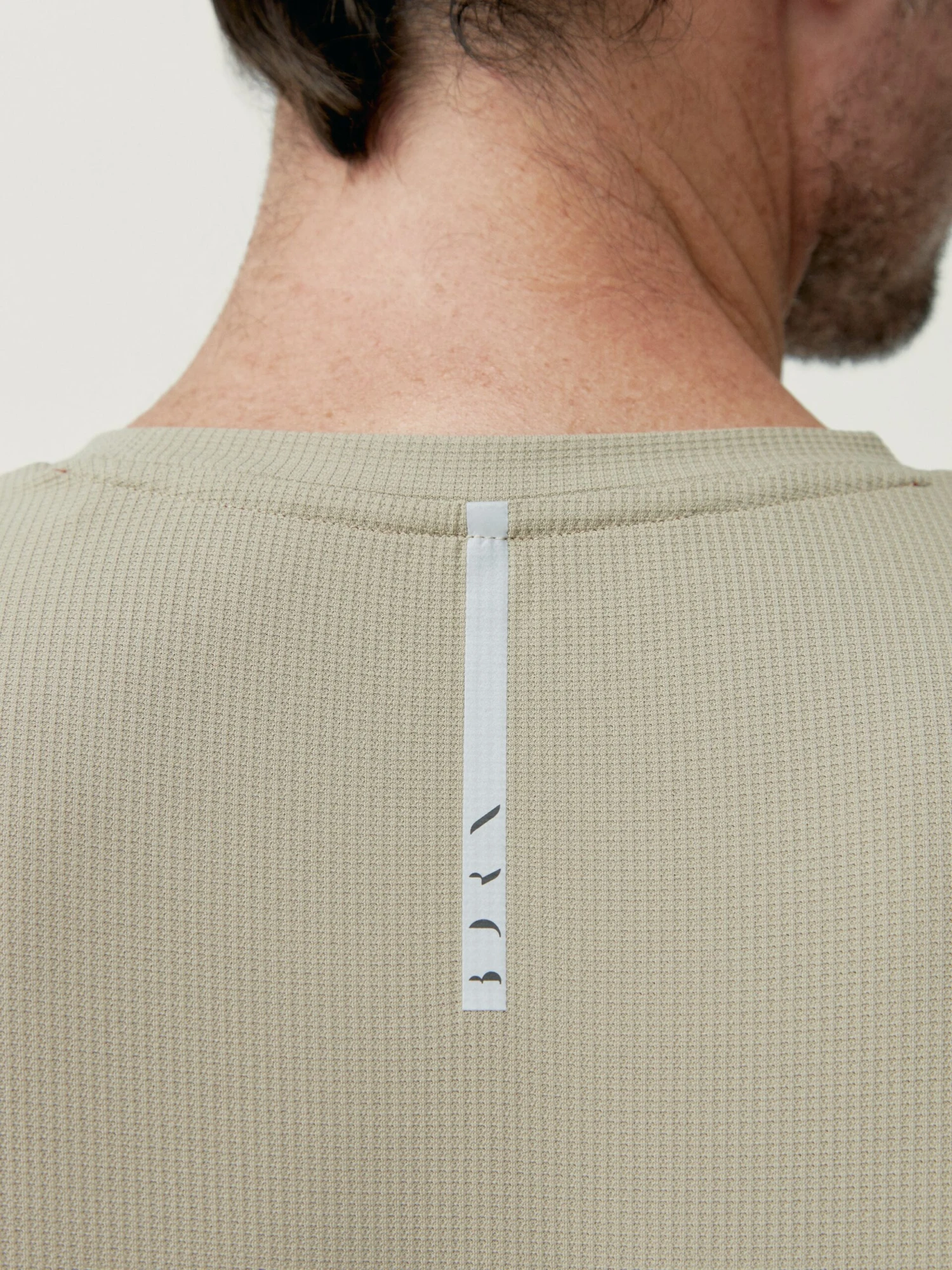 Camiseta técnica manga corta. Tejido “Woff_Pro” ligero, elástico y confortable, para llegar a todos tus movimientos. Con textura “gofrada” para proporcionar mayor transpirabilidad. Espalda ligeramente más larga y aberturas laterales. Cuenta con un print reflectante en la parte trasera.