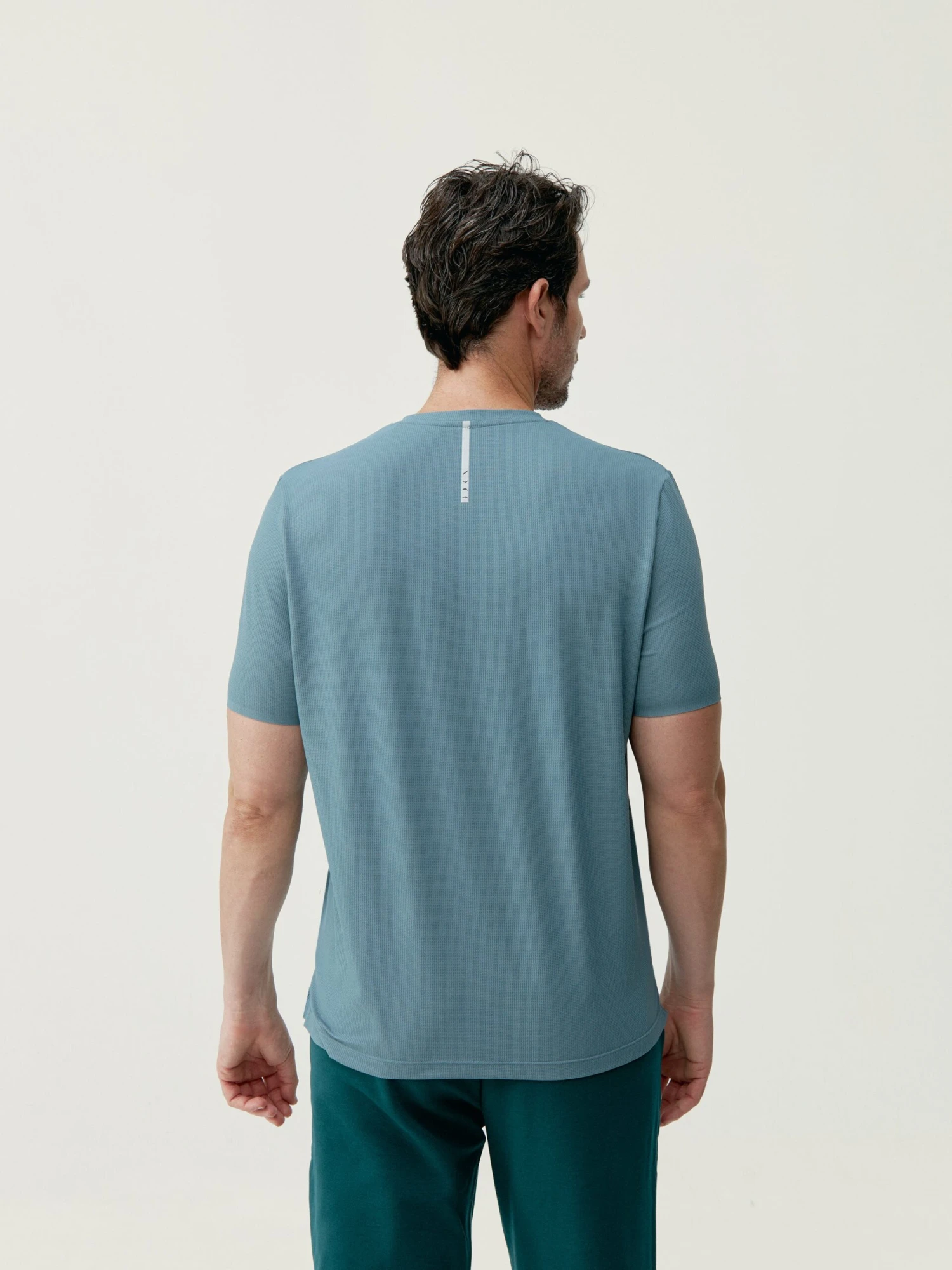 Camiseta técnica manga corta. Tejido “Woff_Pro” ligero, elástico y confortable, para llegar a todos tus movimientos. Con textura “gofrada” para proporcionar mayor transpirabilidad. Espalda ligeramente más larga y aberturas laterales. Cuenta con un print reflectante en la parte trasera.