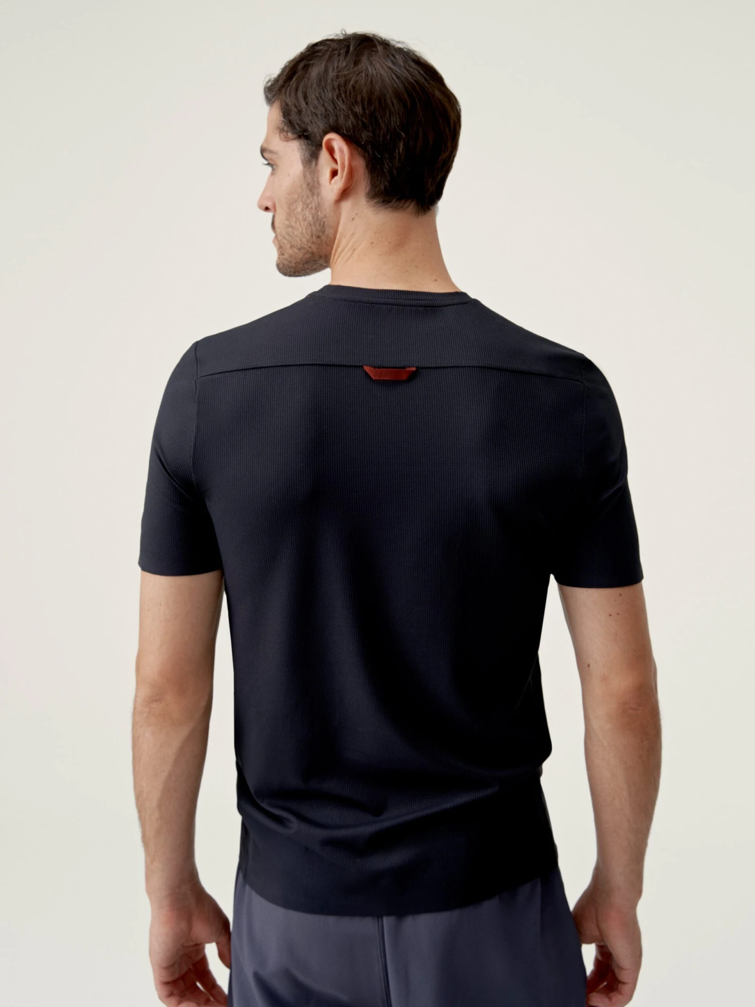 Camiseta técnica manga corta. Tejido “Woff_PRO” ligero, elástico y confortable, para llegar a todos tus movimientos. Con diferentes texturas estratégicas para proporcionar mayor transpirabilidad. Cuenta con una cinta en la parte trasera para colgar.