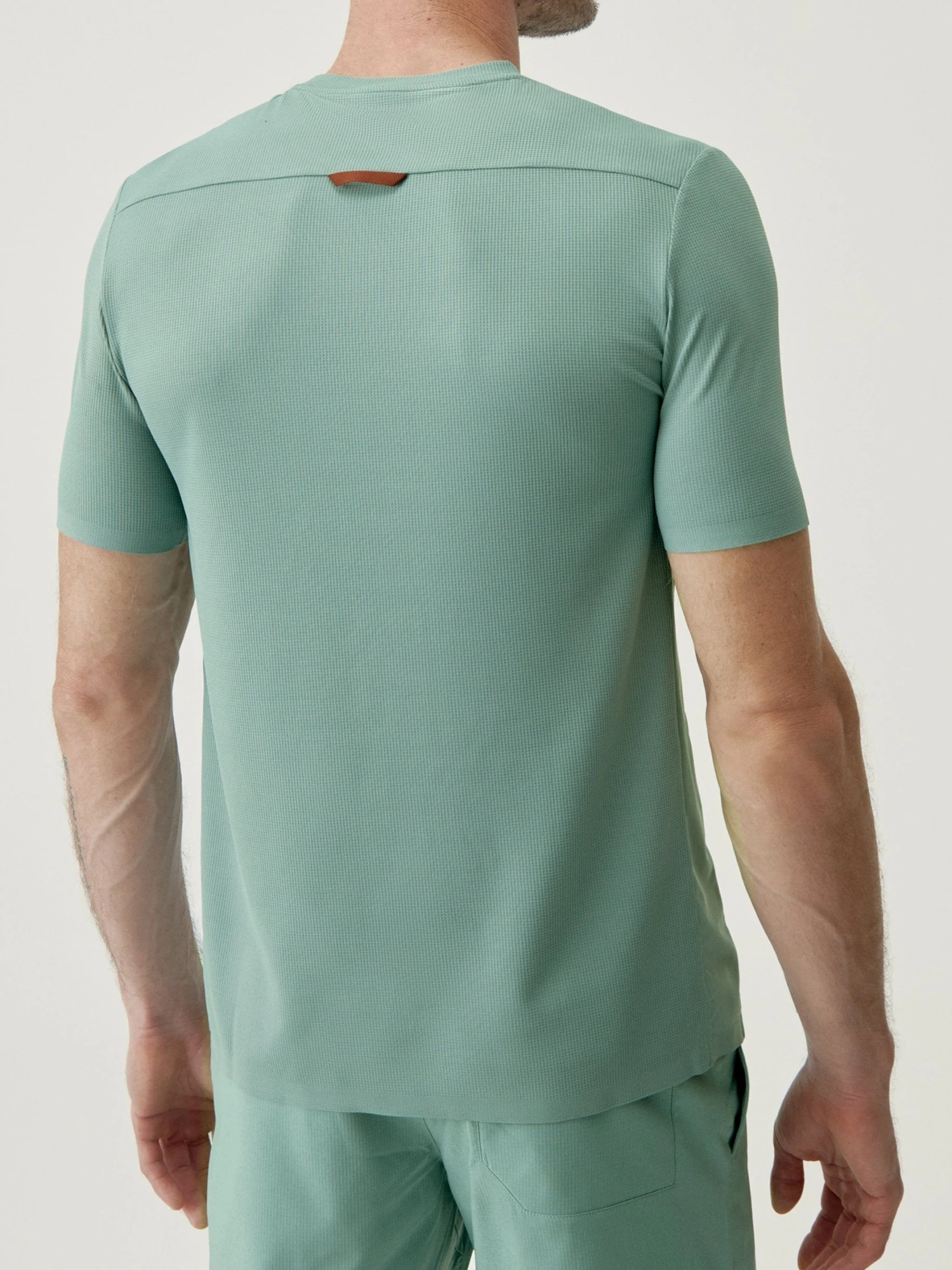 Camiseta técnica manga corta. Tejido “Woff_PRO” ligero, elástico y confortable, para llegar a todos tus movimientos. Con diferentes texturas estratégicas para proporcionar mayor transpirabilidad. Cuenta con una cinta en la parte trasera para colgar.