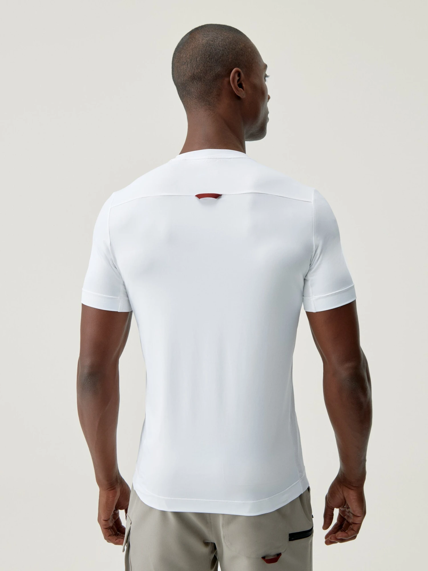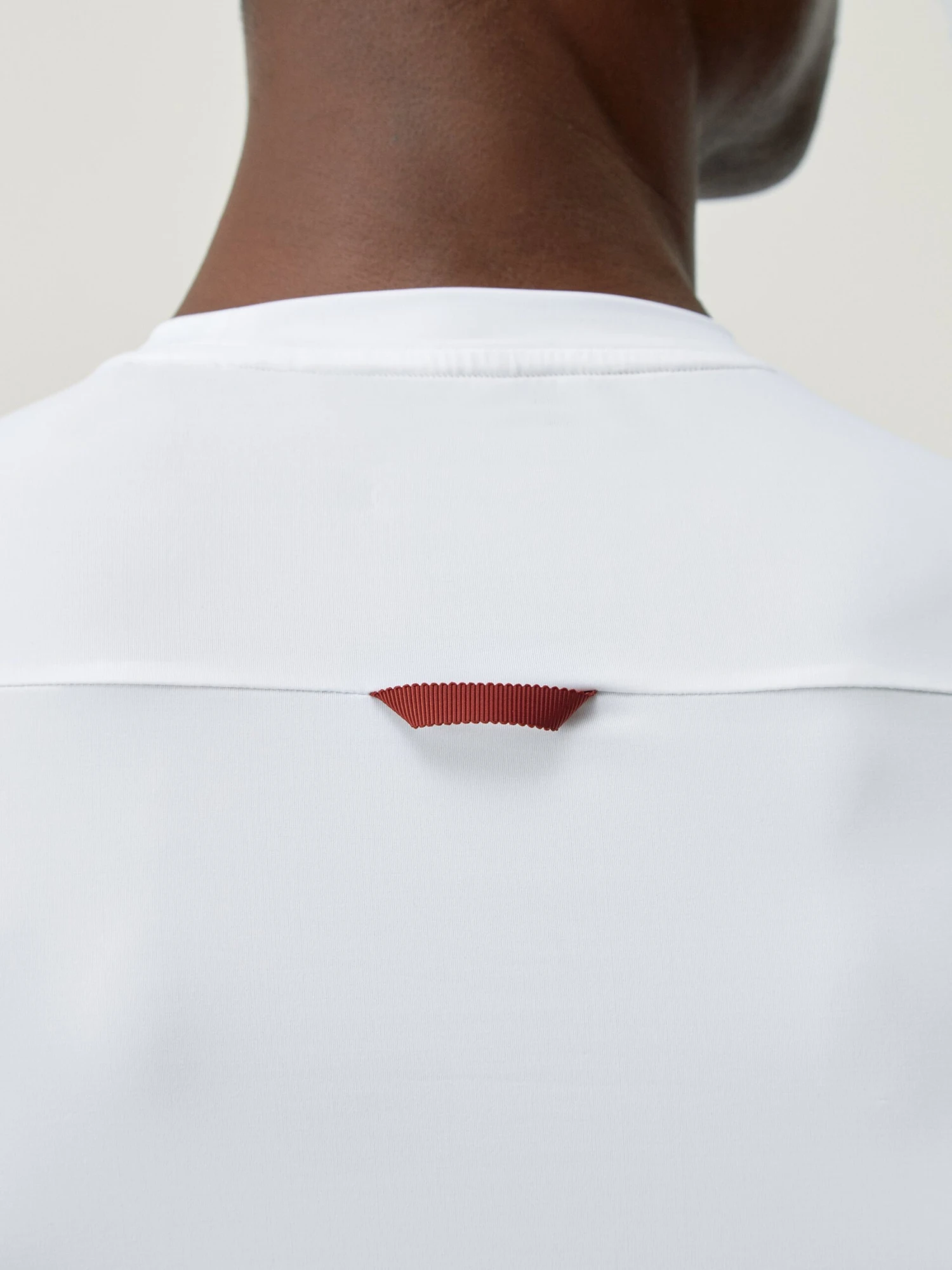 Camiseta técnica manga corta. Combinando tejido “Cool_T” ligero, elástico y confortable con tejido “Woff_PRO”. Cuenta con una cinta en la parte trasera para colgar.