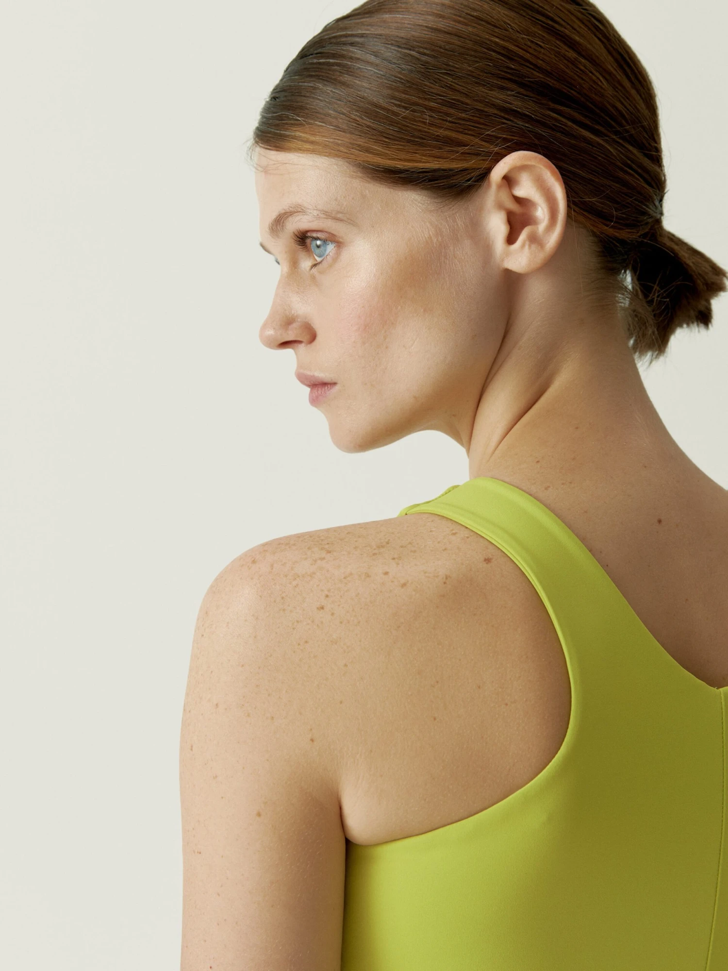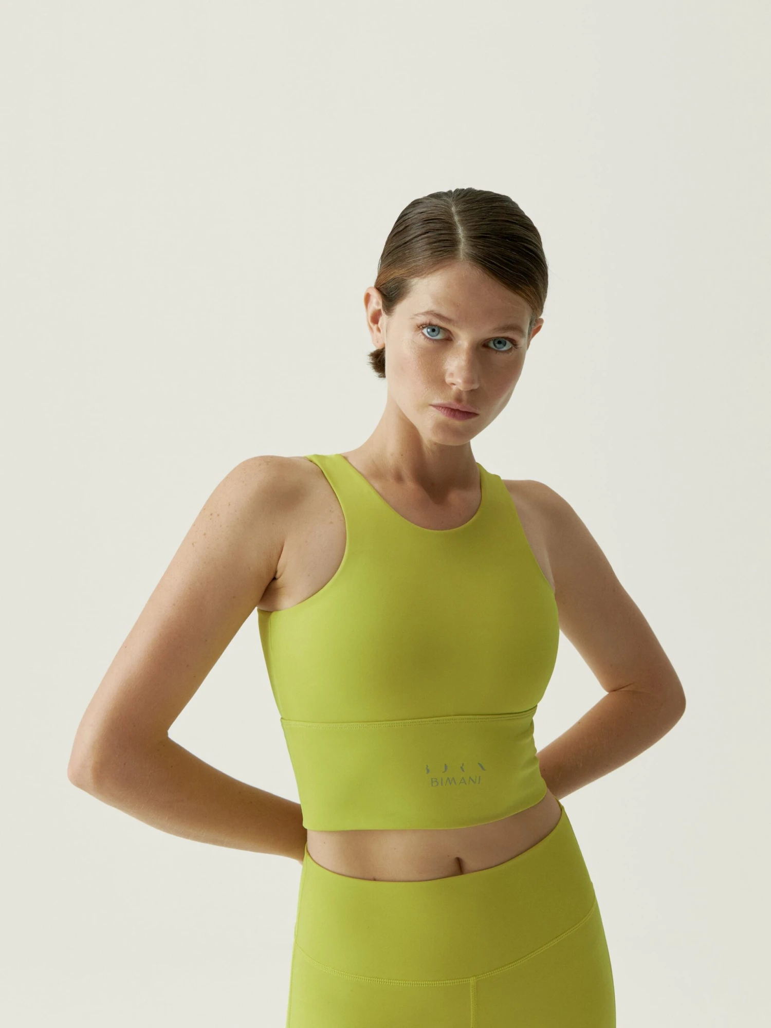 Top cropped con diseño sobrio y elegante con tirantes anchos para una mayor sujeción y comodidad. Tejido “Shape_Tech” con tecnología Performance.