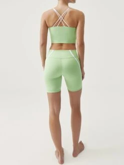Top deportivo de sujeción media-alta, efecto camiseta cropped con sujetador interior. Tirantes cruzados a contraste. Tejido “Skin_move”. Interior tejido mesh para mayor ligereza.