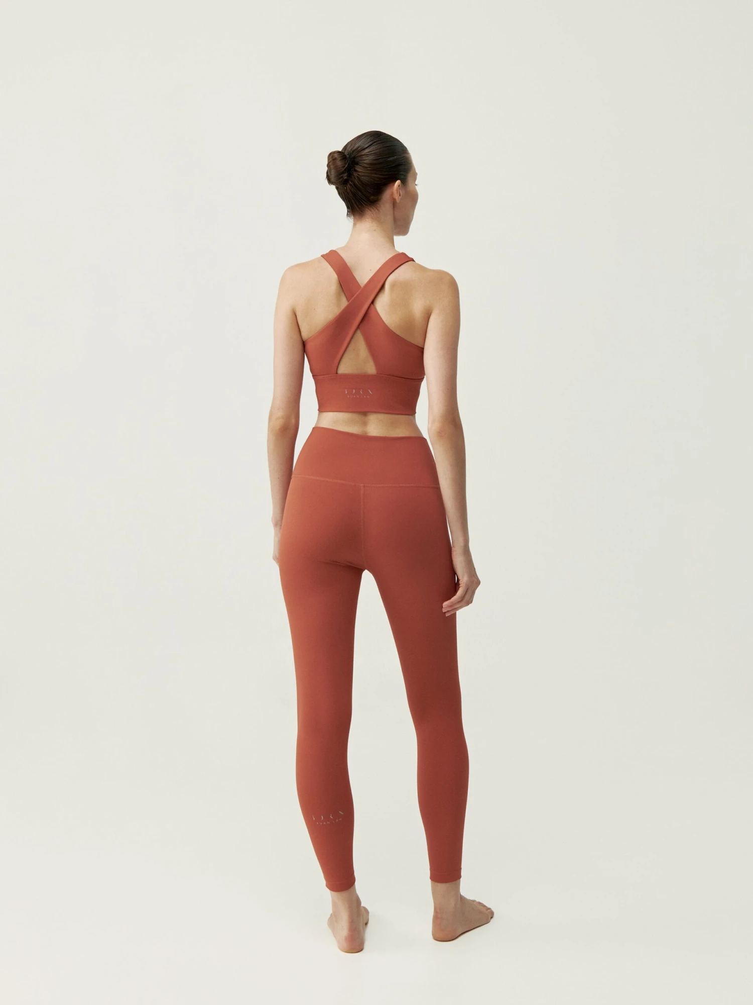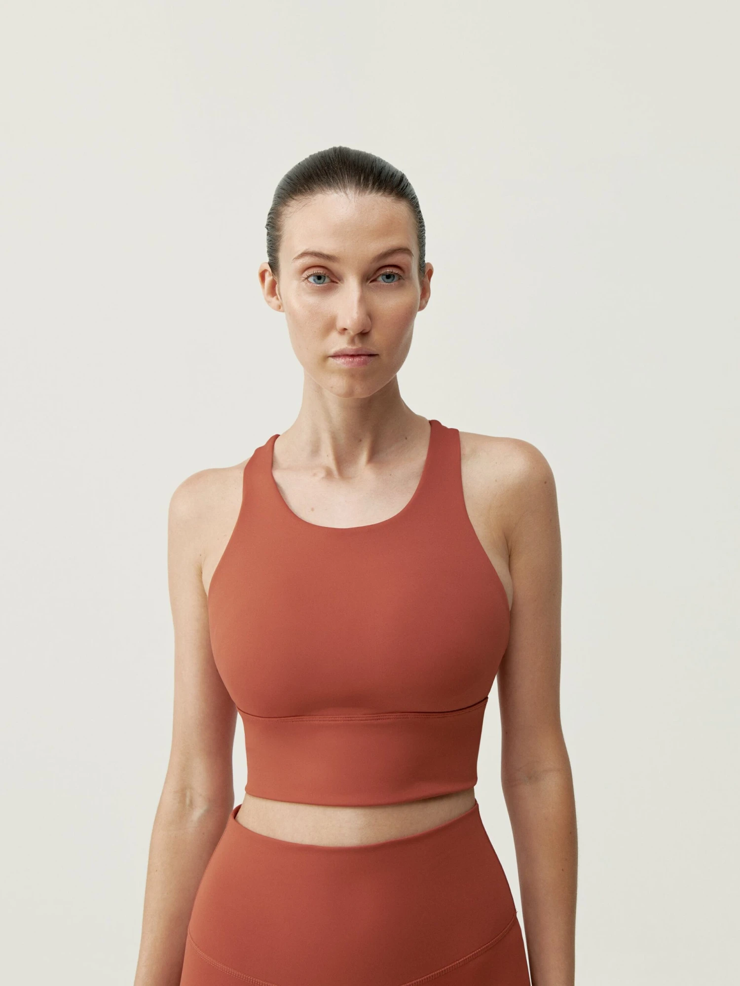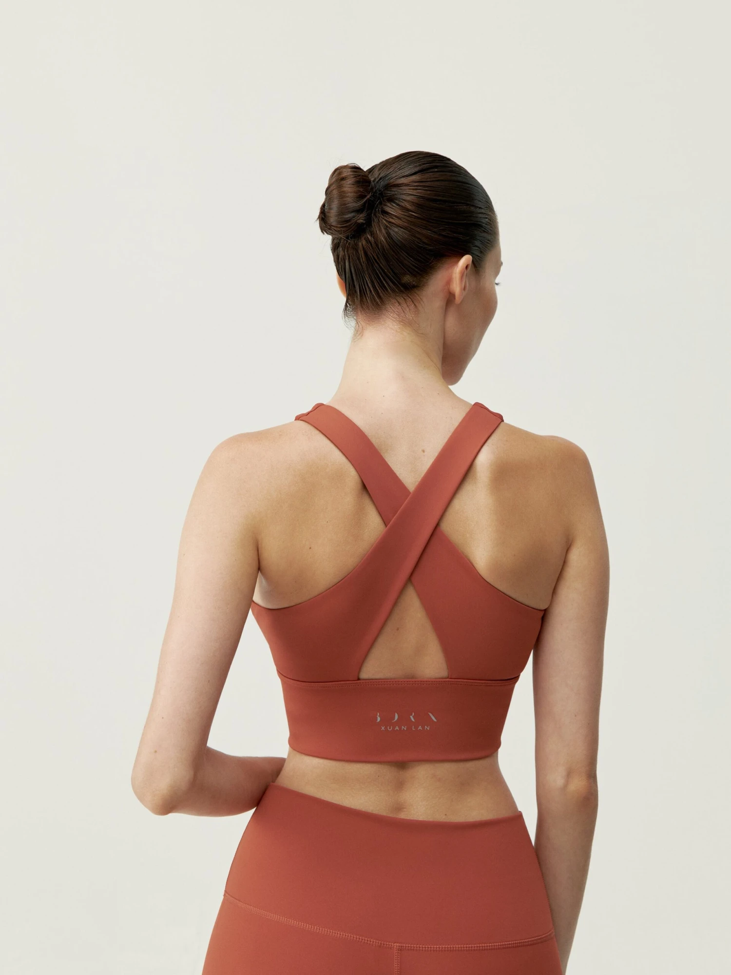 Top deportivo de sujeción alta, con patrón “cropped”. Tejido “Shape_Tech” con tecnología Performance. Diseño con tirantes anchos cruzados para una mayor sujeción y mayor comodidad para tu práctica de yoga u otra actividad.