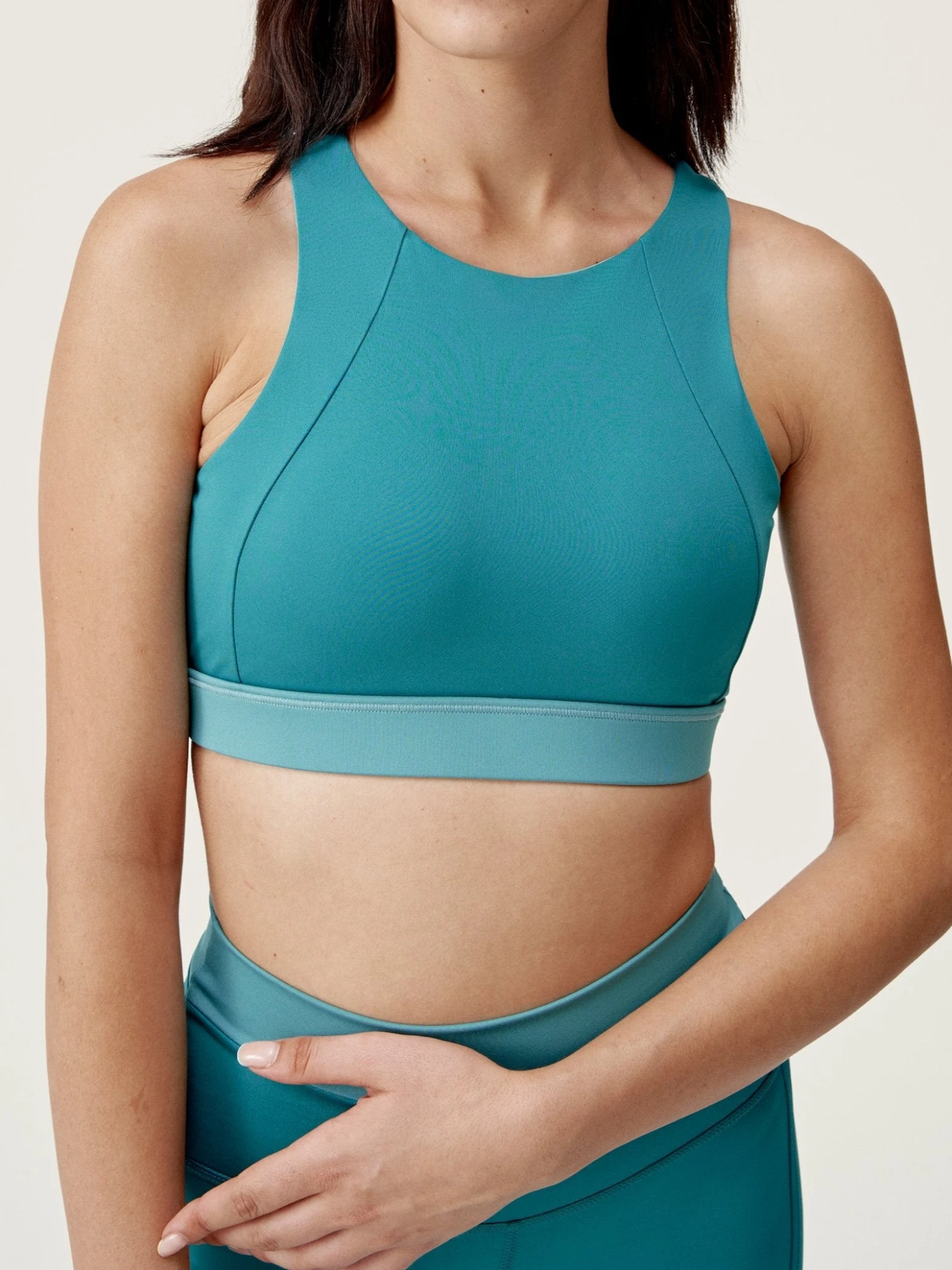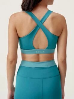 Top deportivo reversible, con tintes anchos cruzados para mayor comodidad. Su sujeción es media-alta. Tejido “Shapplex_B”. Dandole la vuelta consigues cambiar el color.
