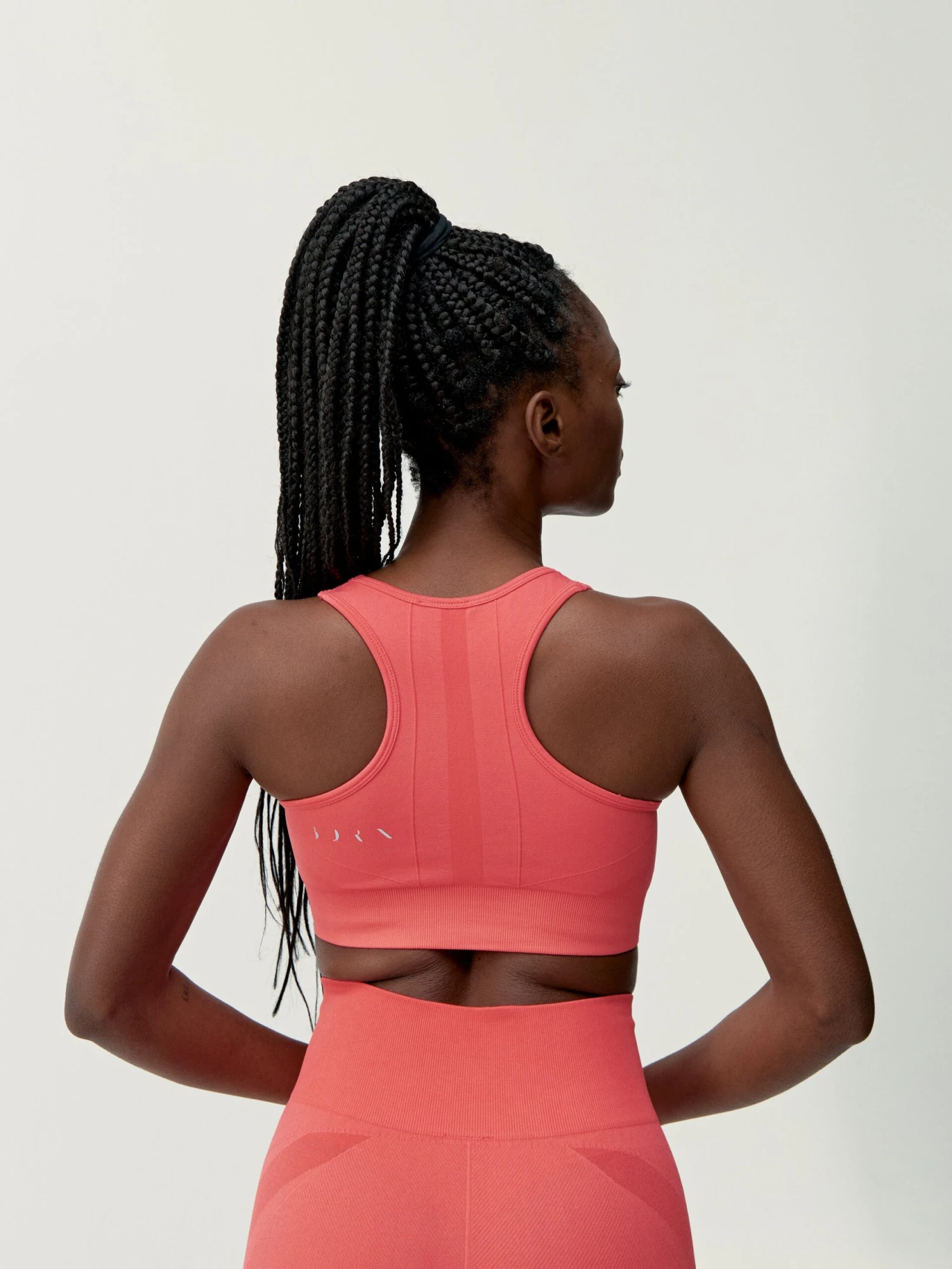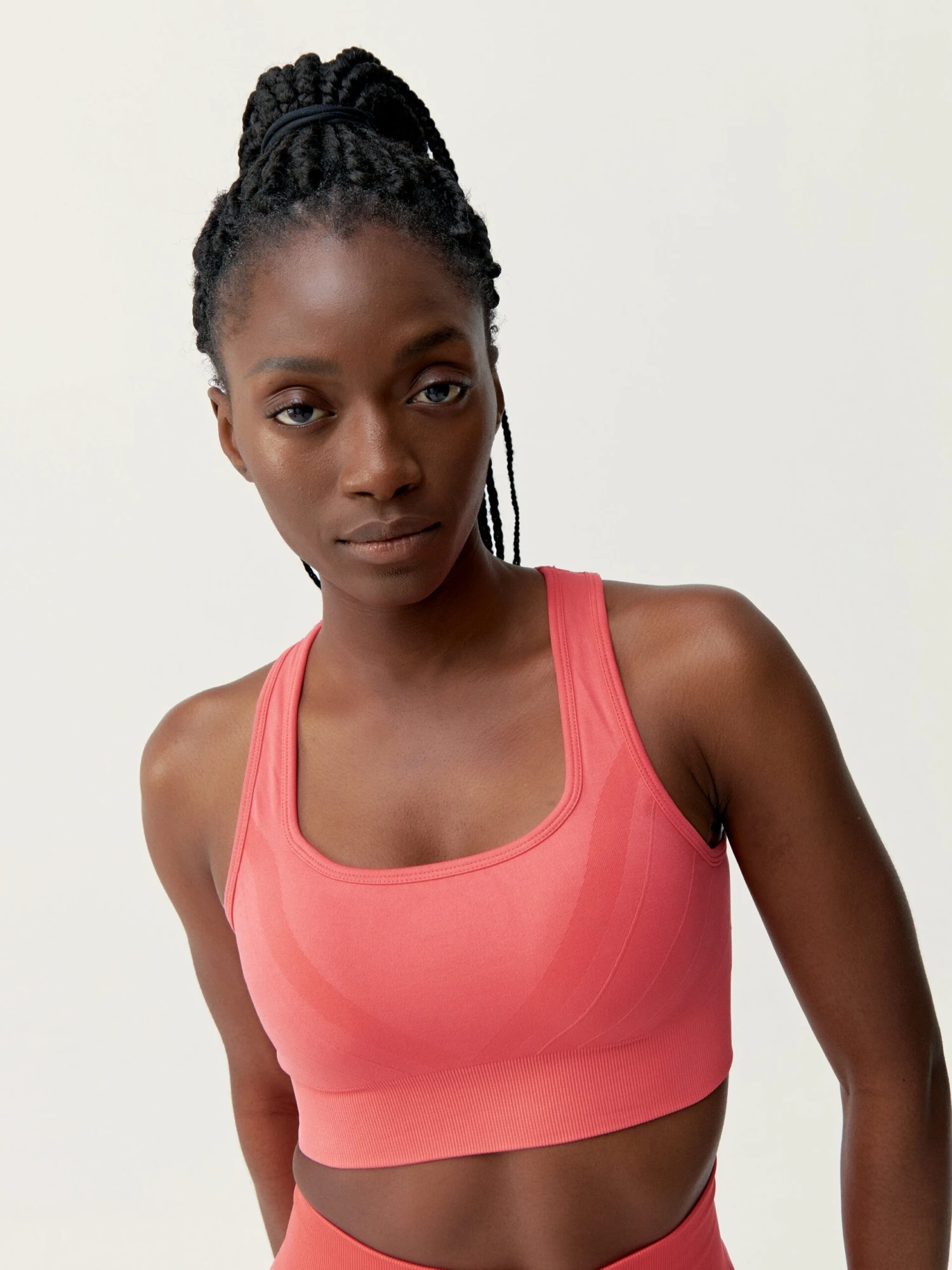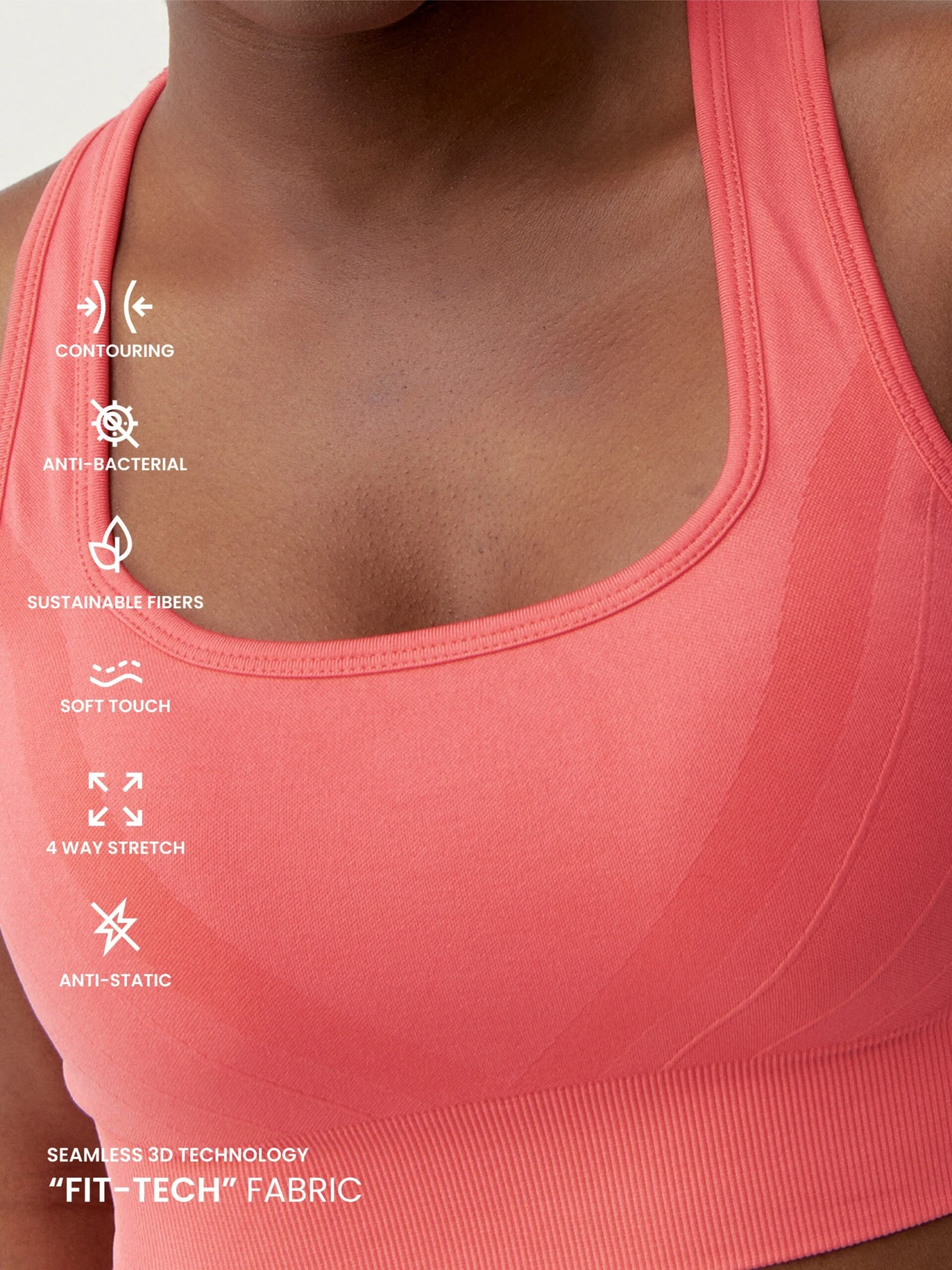 Top deportivo de sujeción media-alta. Tejido “Fit_Tech”. Tecnología 3D. . Top sin costuras con espalda atlética aportando una maxima adaptabilidad y comfort permitiendo llegar a cualquier movimiento.
