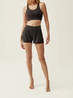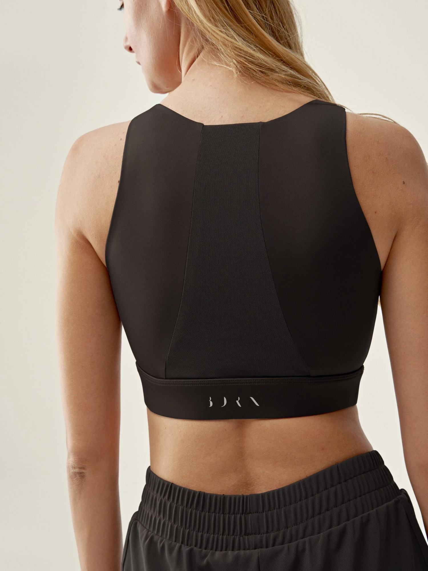 Top deportivo alta sujeci贸n. Corte crop para un mayor agarre. Tirantes anchos y escote en U. Detalle de tejido mesh en la espalda que le da mayor transpirabilidad.