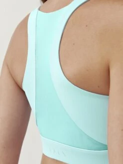 Sujetador deportivo de sujeci贸n alta. Tejido Premium. Top estilo cropped con doble banda superior para mayor soporte. Espalda totalmente cerrada con detalle de tejido mesh efecto transpirable.