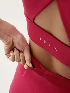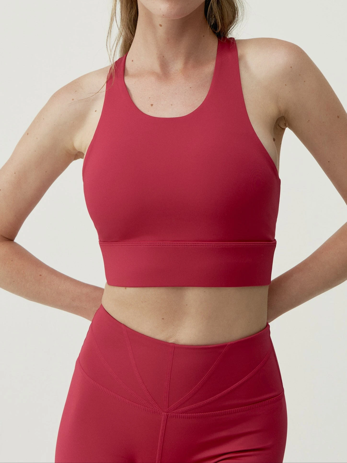 Sujetador deportivo de sujeci贸n alta, patr贸n cropped y tejido premium. Tirantes anchos cruzados en la espalda para un dise帽o 煤nico. Escote en U y doble banda inferior para una mayor sensaci贸n de comodidad.