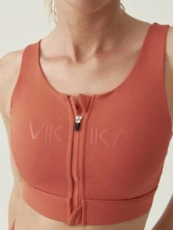Top deportivo de sujeción alta. Tejido “Skin_move”. Cuenta con cremallera frontal para darle mas sujeción y comodidad. Cremallera con protector anti-roces. Logo “Vikika”. Espalda con doble tirante cruzado en tejido de Mesh.