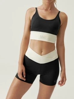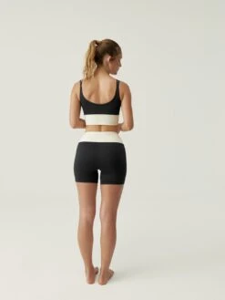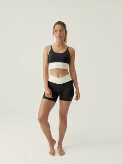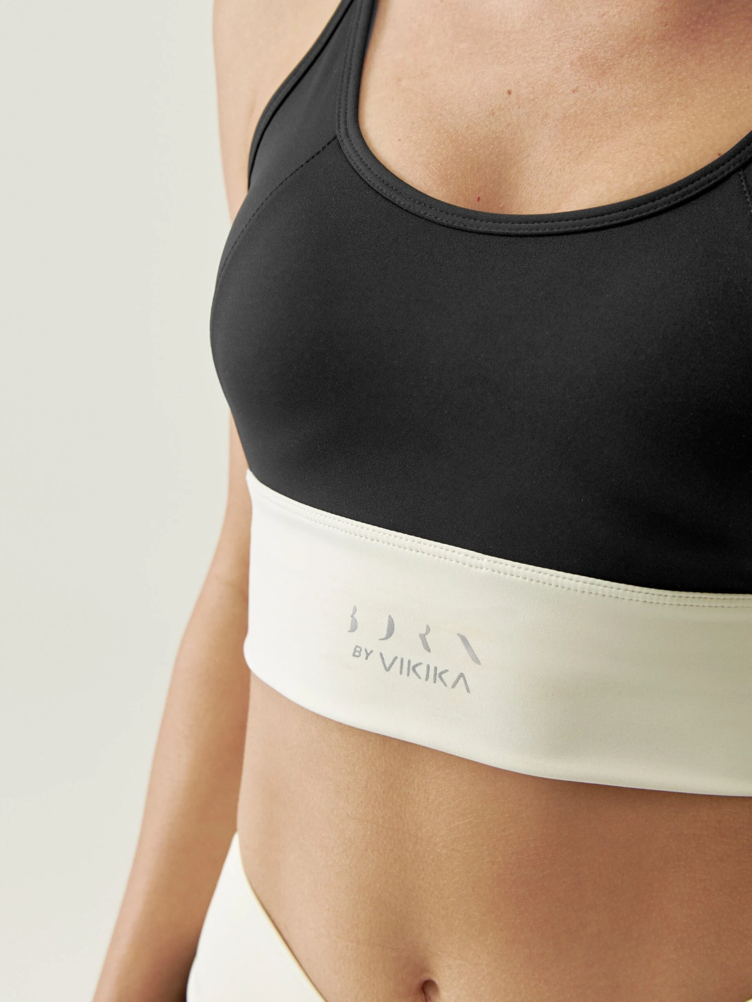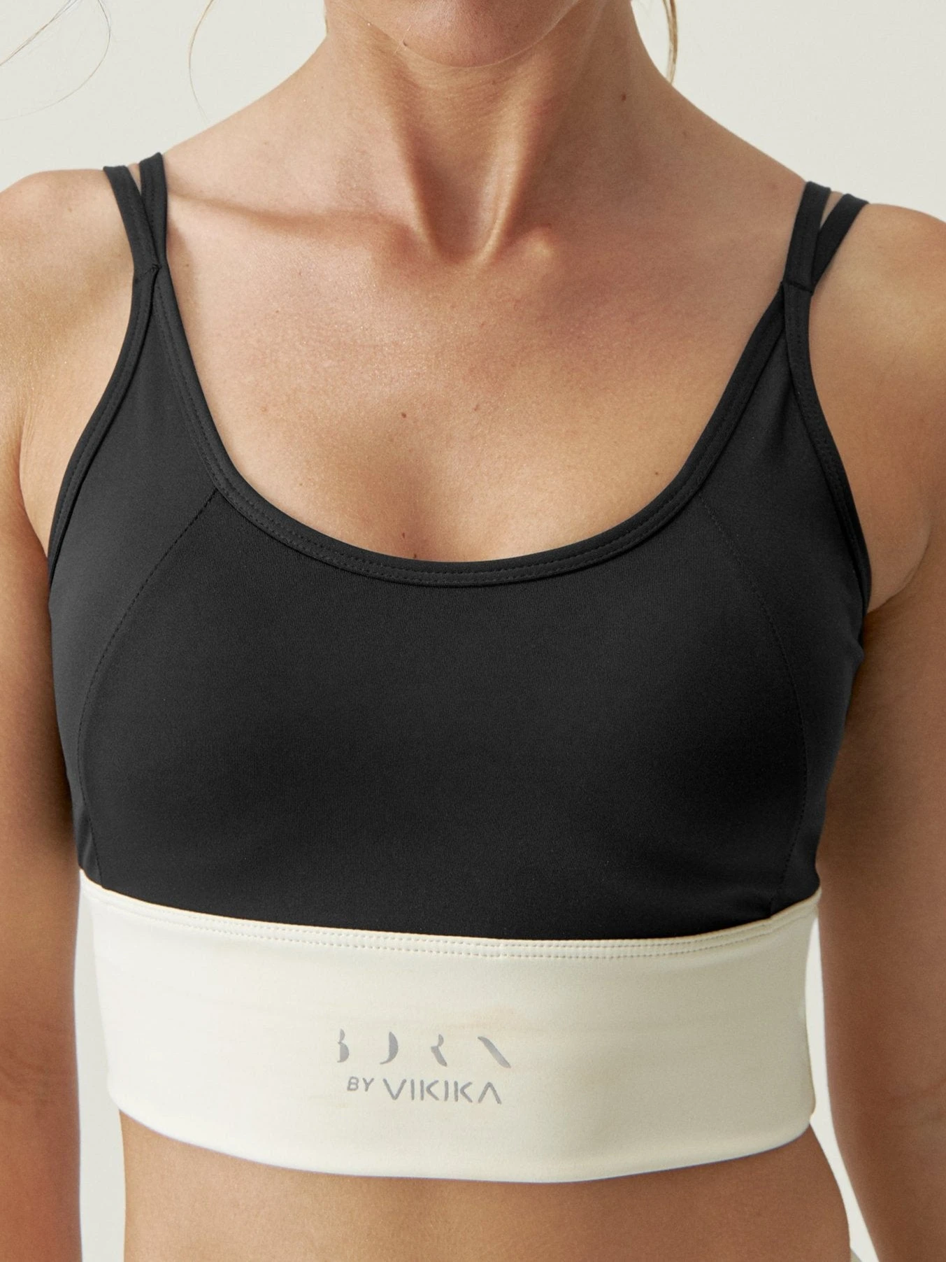 Top deportivo bicolor de sujeción media. Patrón cropped para una mayor cobertura. Tejido “Skin_move”. Doble tirante a ambos lados.