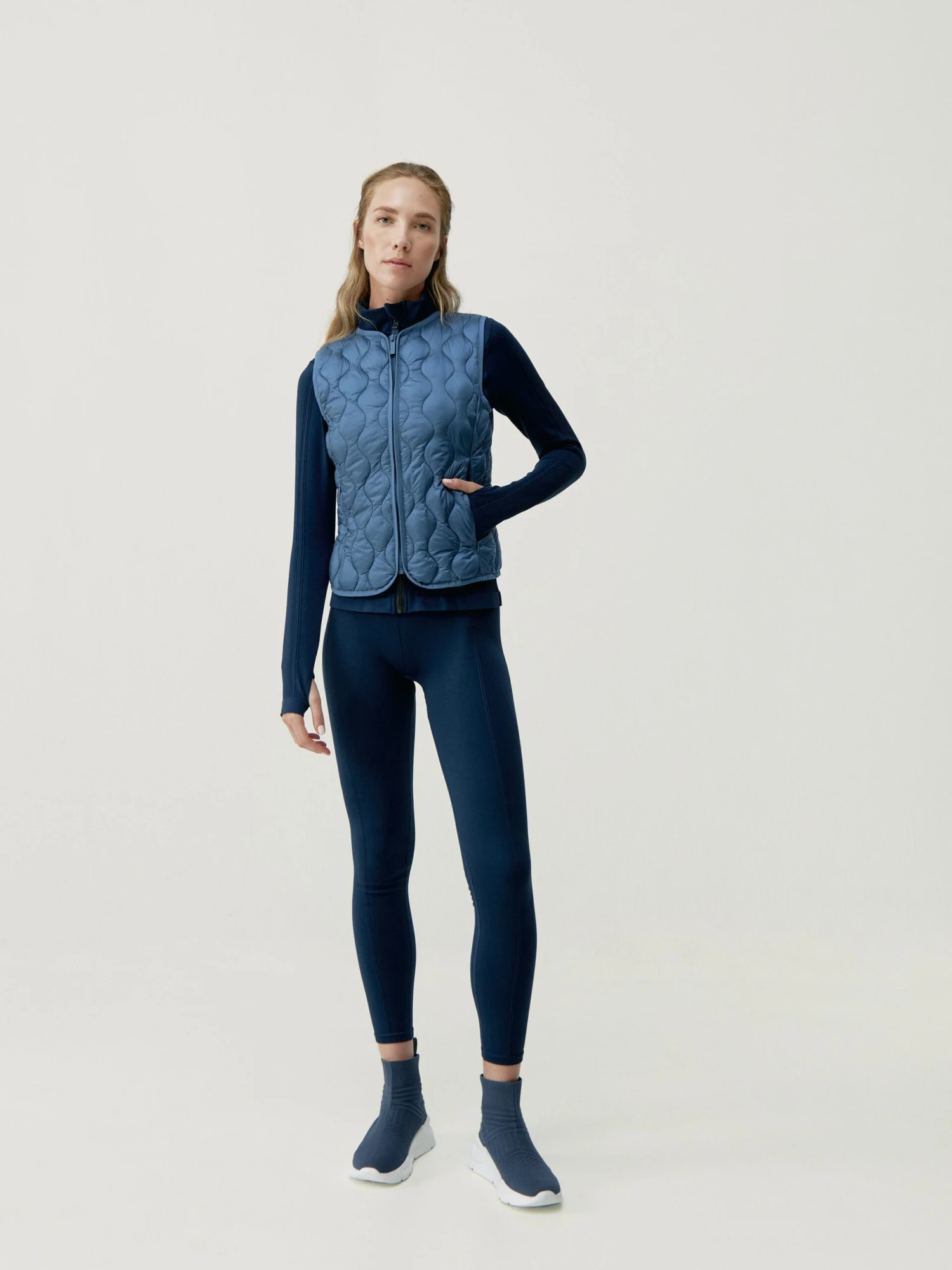 Chaleco acolchado con tejido windstopper. Bolsillos laterales con cremallera oculta. Pieza lateral para un fitting perfecto. Relleno vegano. Perfecto para tus actividades outdoor, como deportes de raqueta, running, walking…. Cuenta con una practica bolsa para su transporte.